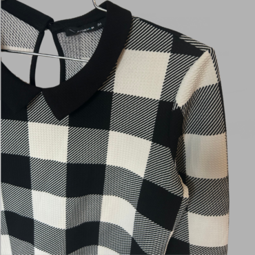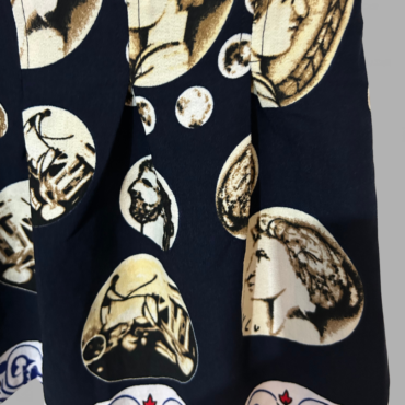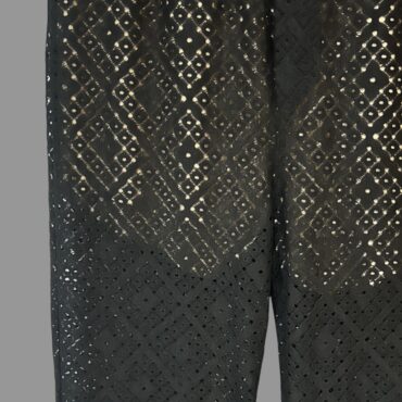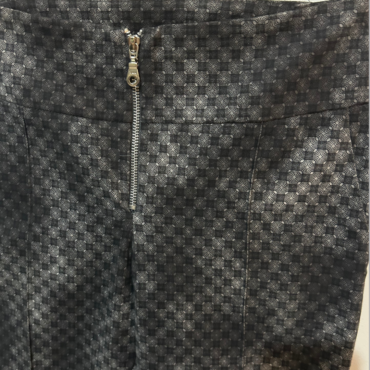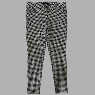 מכנסיים מחויטים גזרה גבוהה מידה M בהדפס גיאומטרי שחור אפור