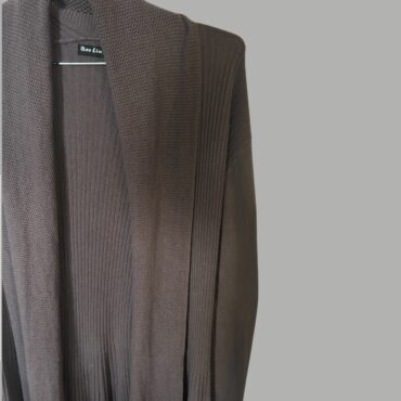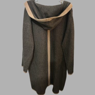 Bad Lin Nino קרדיגן קשמיר וצמר ארוך אפור גזרה מתרחבת נקשרת במותן. מצב חדש