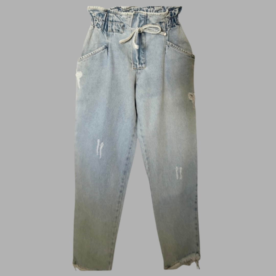 ג׳ינס מאמ מושלם! גזרה גבוהה, אורך קרופ וגומי מלמלה במותן עם שרוך קשירה