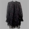 יתאים לנשים נמוכות! שמלת מיני שיפון עם צווארון גבוהה עם כיווצים! צבע שחור עם פרחים ! ללא לייקרה! רוכסן מאחורה ומכנסיים קצרים מחוברים למטה! הדפס פרחים אדומים ולבנים וכתפיים קצת תפוחות