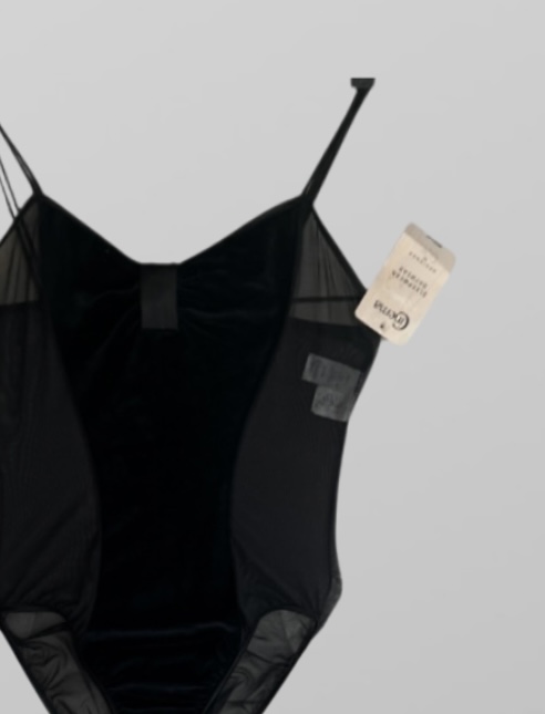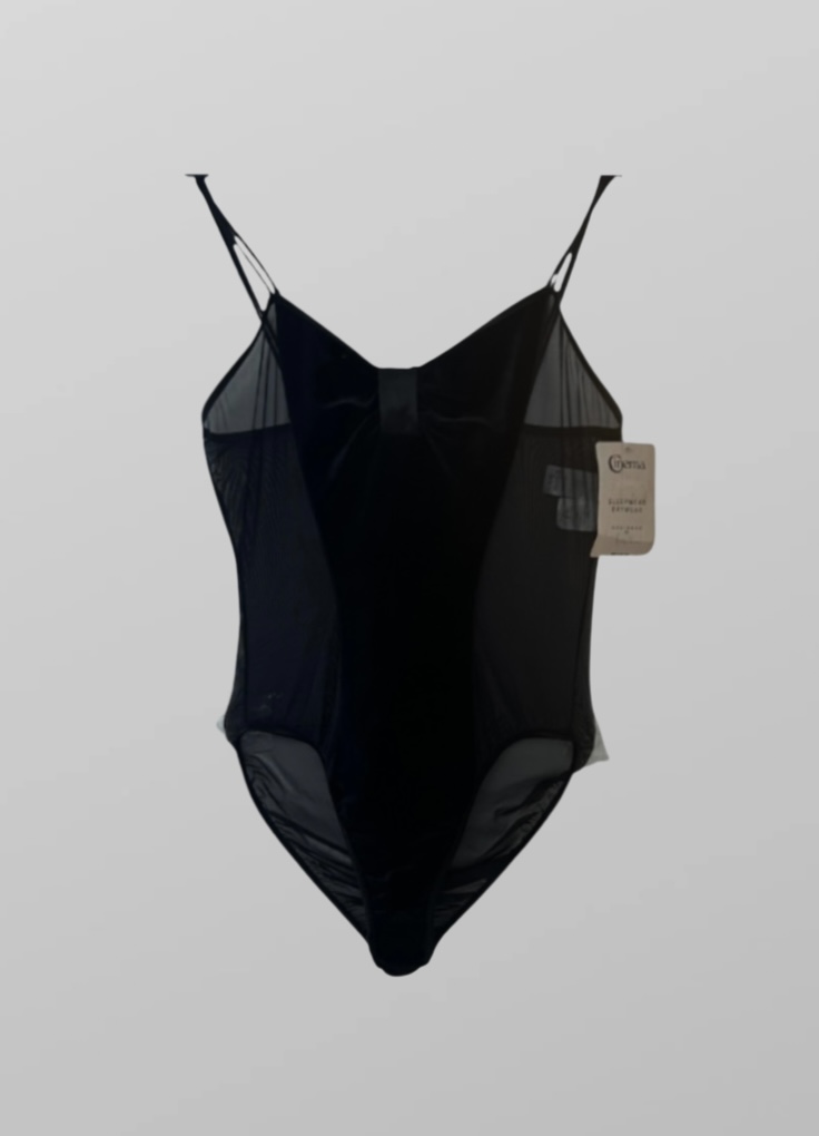 חדש לגמריי! בגד גוף לייקרה סקסי של ג׳ק קובה בצבע שחור מידה M בשילוב קטיפה באמצע עם צורת פאפיות באזור החזה עם סאטן ושיפון בצידי הבגד גוף ומאחורה! סגירת טיקטקים למטה!