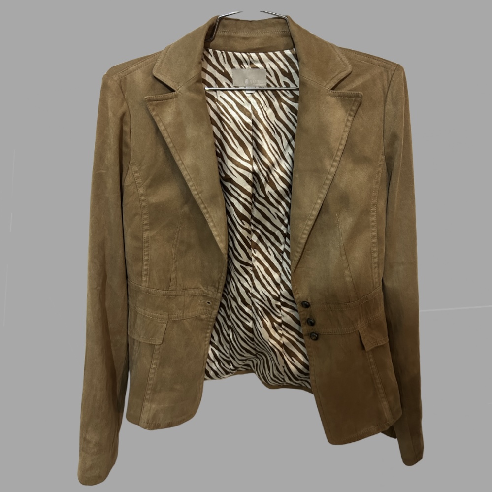 בלייזר חום וינטג׳ עור דמוי זאמש קטיפתי מידה S מצב מצויין