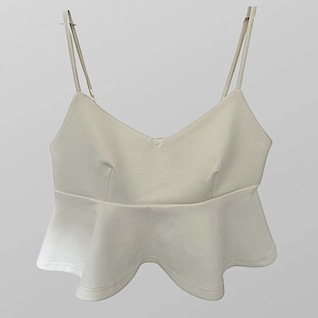גופיה חגיגית לבנה עם כתפיות ופפלום מידה S של סטודיו פאשה