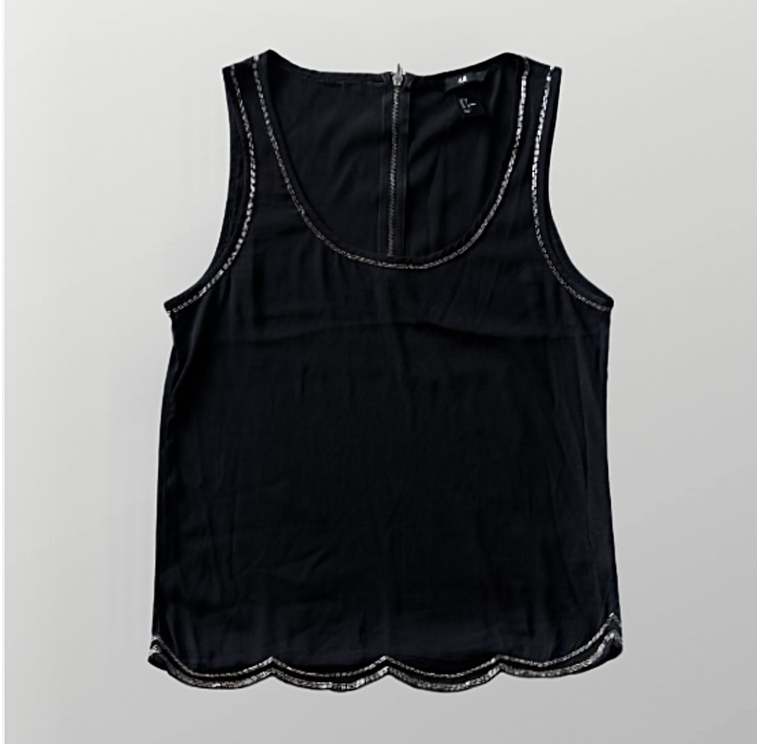 גופייה אלגנטית בשילוב חרוזים בשרוולים ובצווארון! צבע שחור מידה M H&M