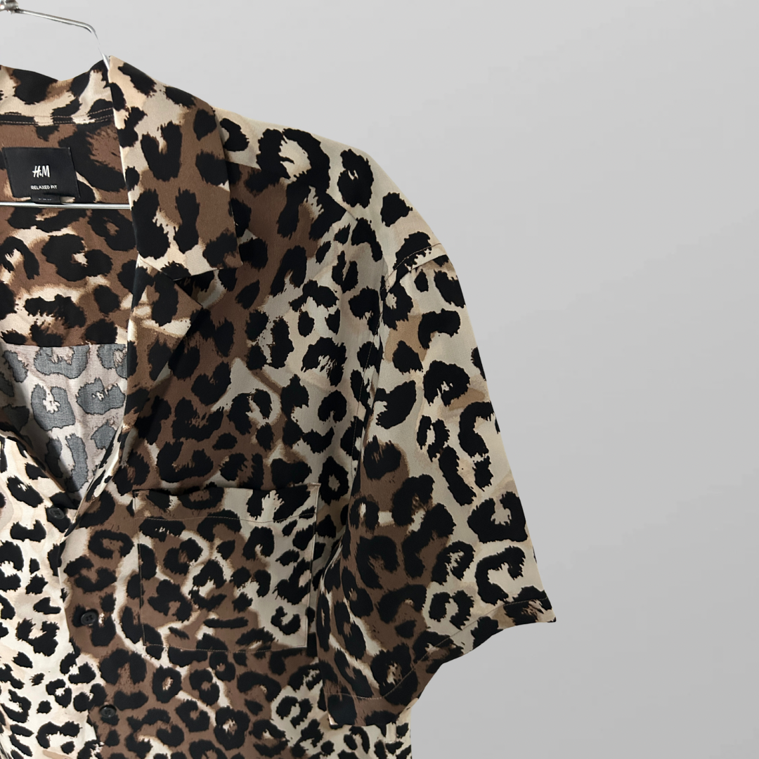חולצת כפתורים (רשום מידה S) אך תתאים עד XL חולצה מנומרת בגזרה רחבה עם כפתורים לאורך, חדשה (ללא טיקט) חולצה בהדפס חברבורות מבד אריג נעים במיוחד לקיץ 2025