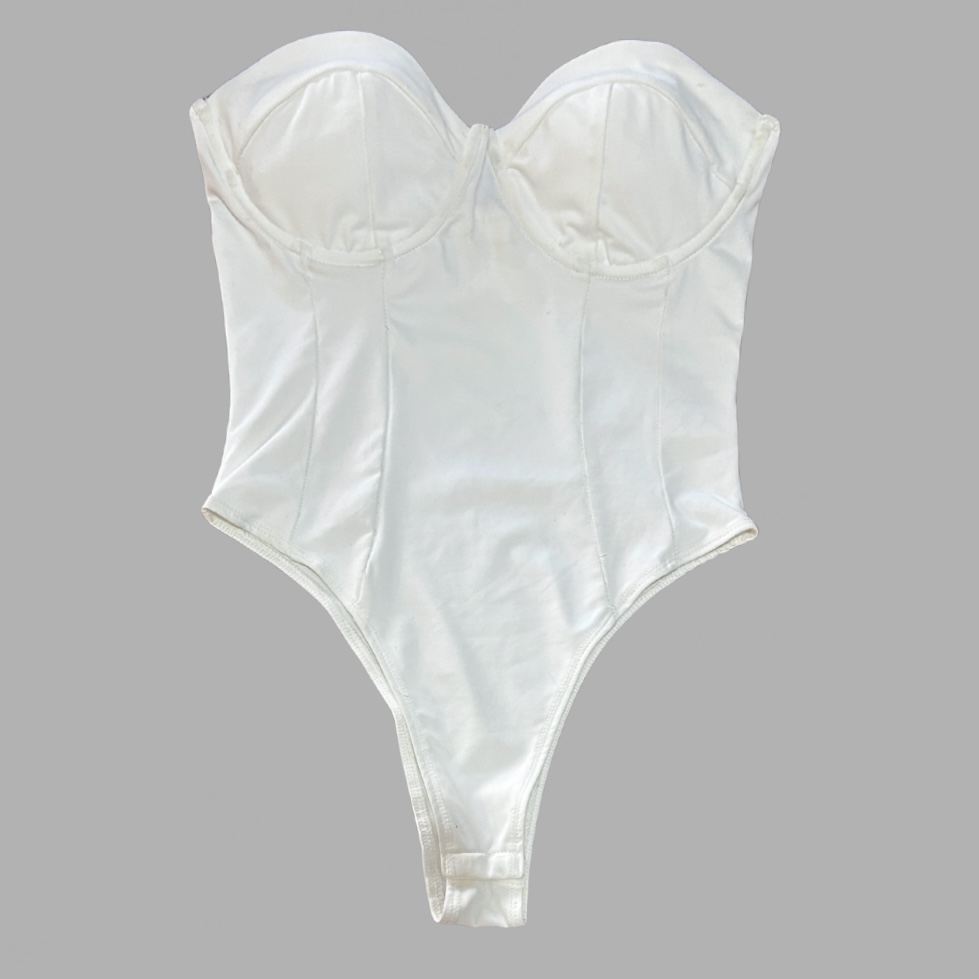 חדש עם טיקט! מידה S סטרפלס בגד גוף לבן לייקרה בסגנון מחוך