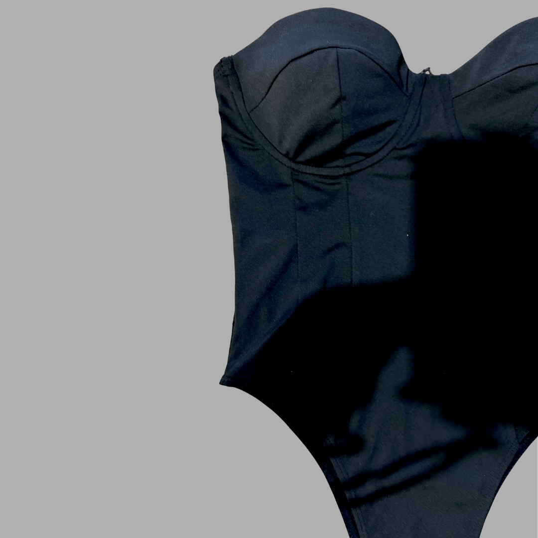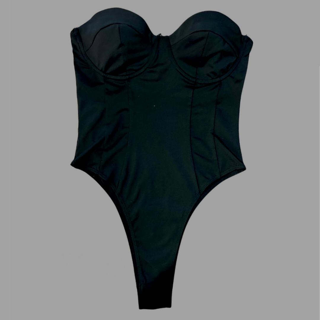 חדש עם טיקט! מידה S סטרפלס בגד גוף שחור לייקרה בסגנון מחוך