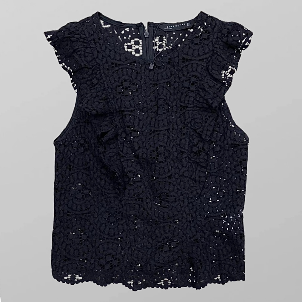חולצת קרושה תחרה אלגנטית בשילוב מלמלה, של זארה מידה L. חולצה חגיגית של מיוחדת שתמיד סוגרת פינה. חולצה מיוחדת ומרשימה