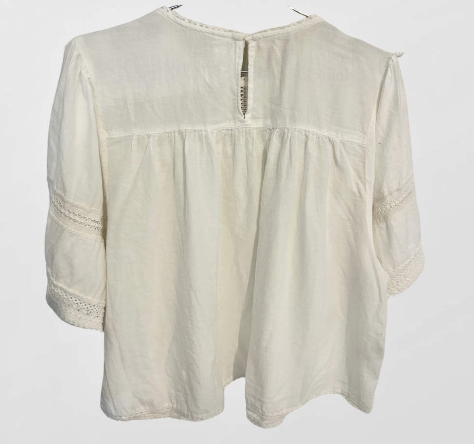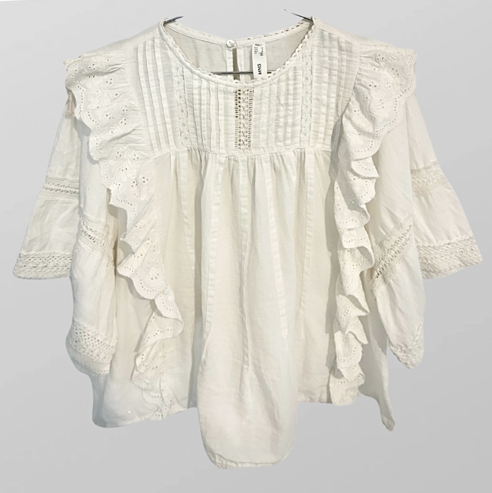 חולצה חגיגית בשילוב מלמלה 100% כותנה בצבע לבן בגזרה רחבה ואורך סטנדרטי של מנגו