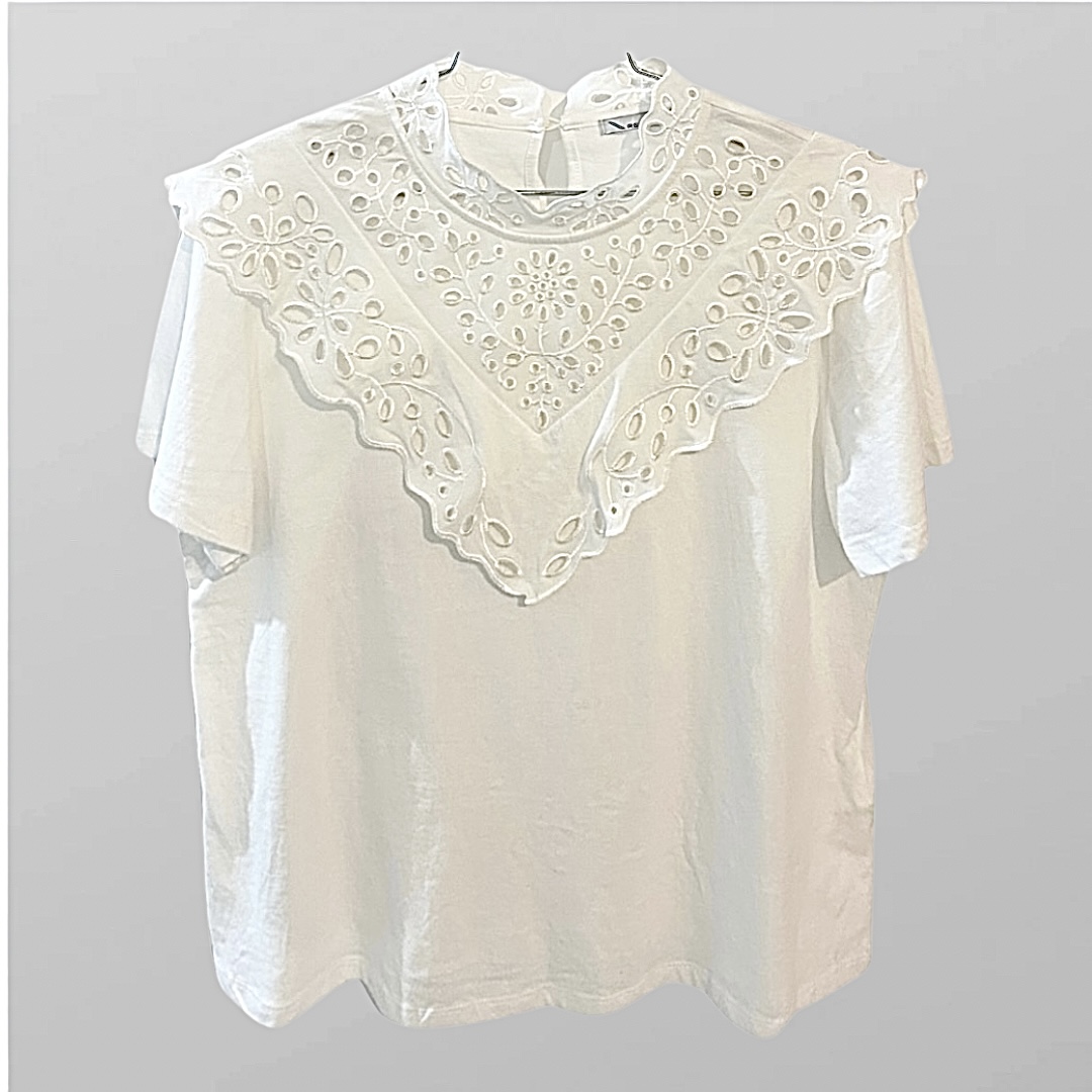 טישרט לבנה בשילוב קרושה ורקמה יוקרתית מידה 38 RENUAR
