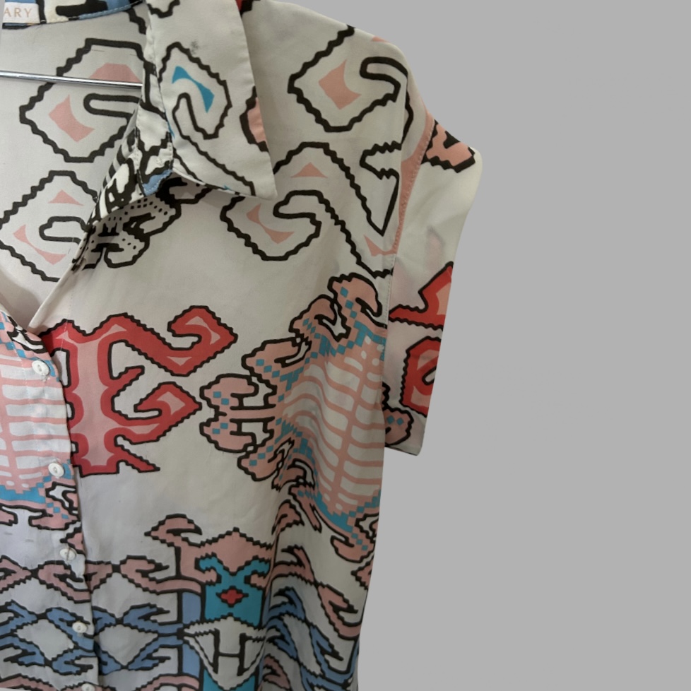 GOLBARY מידה 44 חולצה מכופתרת נשפכת לבנה עם הדפס צבעוני אלגנטית ונעימה מצב כמו חדש!