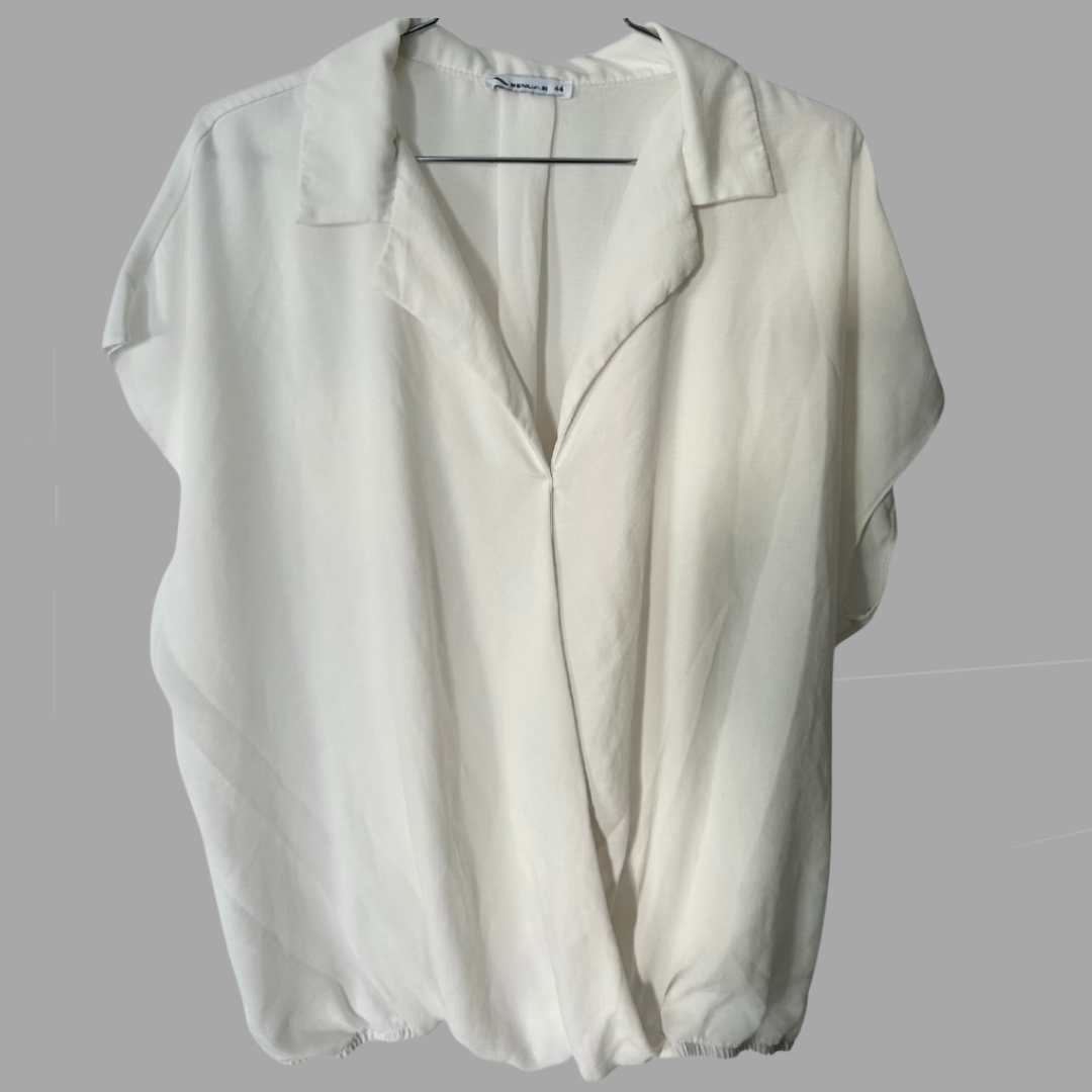 RENUAR חולצה אלגנטית לבנה שמנת מחשוף v מידה 44