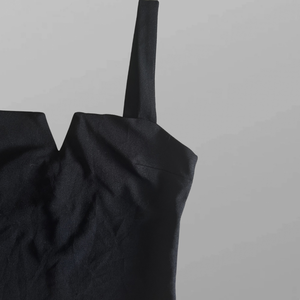 גופיית לייקרה אלגנטית שחורה ומחטבת, מתאימה כ טופ לערב או לארוע ואפילו ליומיום, מידה xs אורך סטנדרטי!