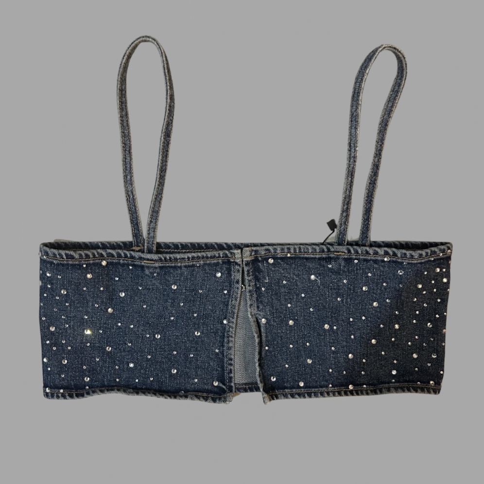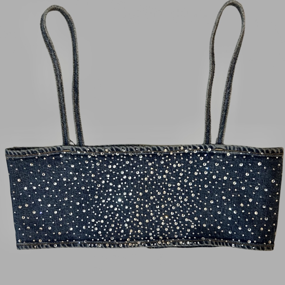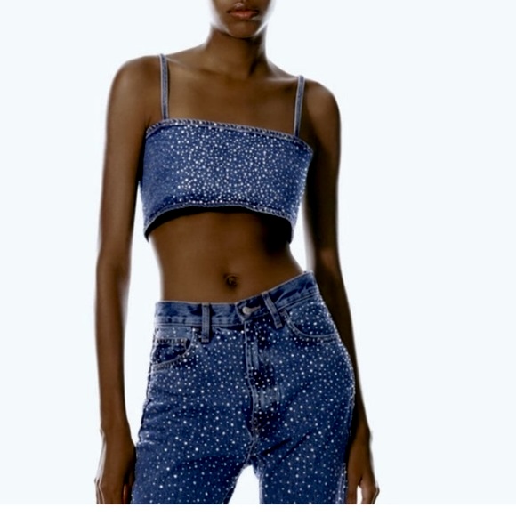 ZARA טופ גינס יהלומים קרופ מידה S לייקרה מצב חדש!