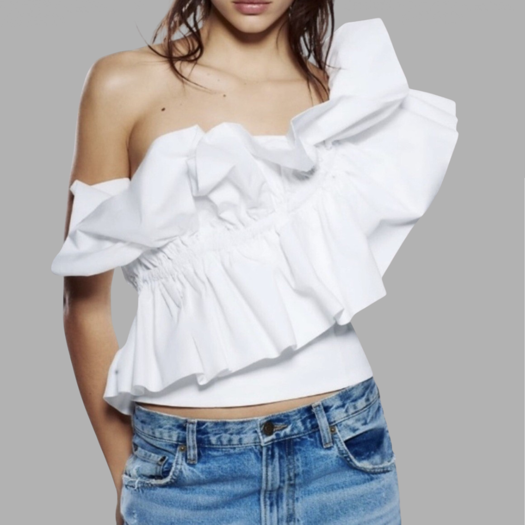 ZARA, חולצת אוף שולדר, חולצה לבנה, חולצה חגיגית, חולצה עם רפל, חולצה אסימטרית, חולצת ערב, חולצה רומנטית, חולצה מחטבת, חולצה חגיגית לנשים, חולצת כתף חשופה, חולצת ערב לבנה, אופנה מודרנית, חולצה חגיגית לאירועים, חולצה נשית, חולצת קיץ, שִׁילָה, חולצה יוקרתית, חולצה דרמטית, אופנת נשים אלגנטית, חולצה מיוחדת.