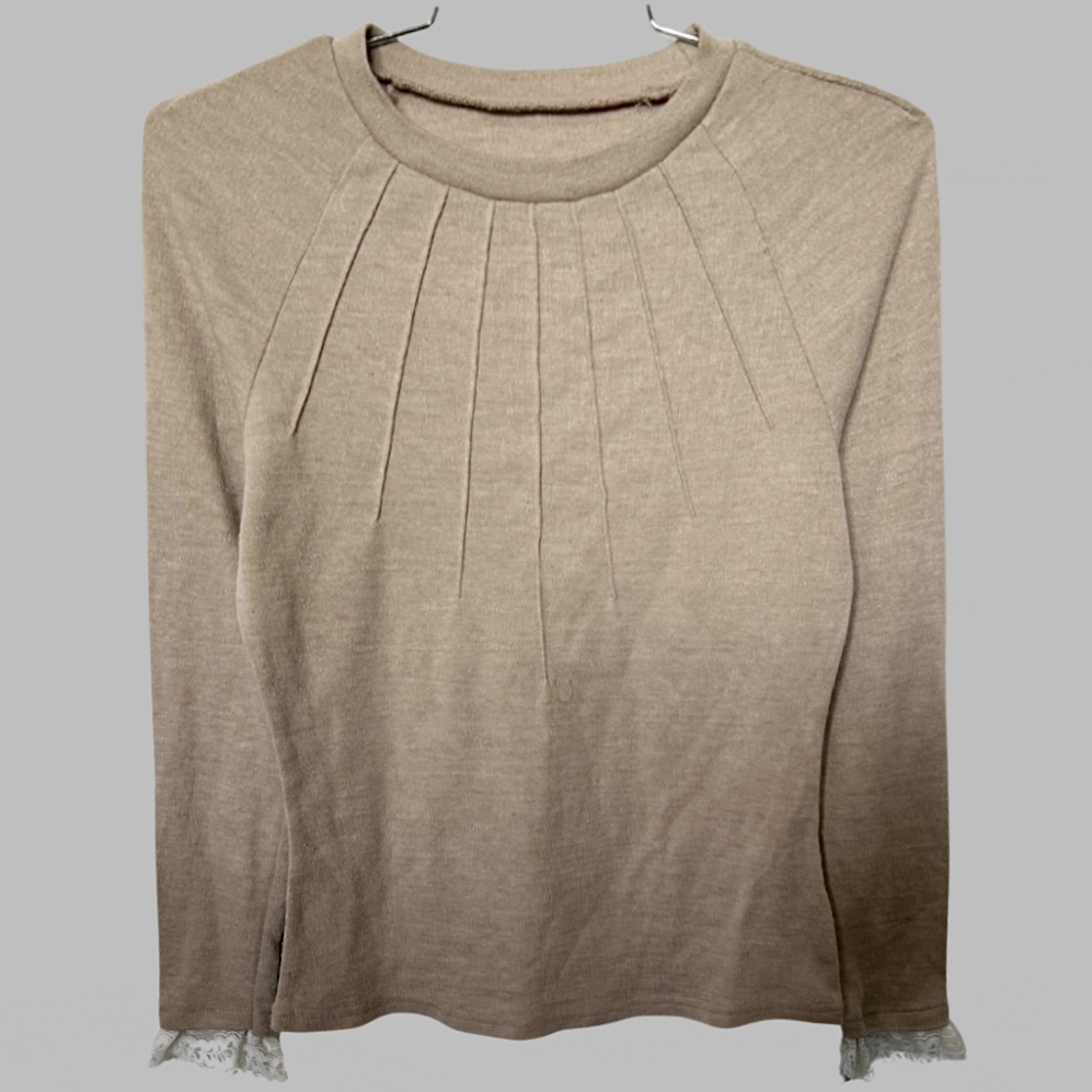 חולצה בצבע מוקה בהיר! בשילוב שרוולי קרושה! גזרה רגילה! מידה S
