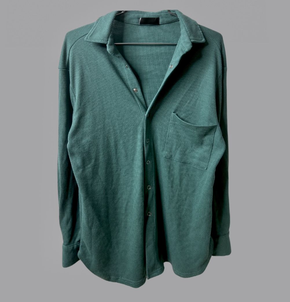 חולצה ירוקה אוברסייז מכופתרת (טיקטקים) בד ופל כותנה מידה M