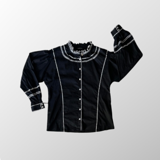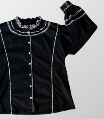 חולצה מכופתרת 100% כותנה gollbary צבע שחור עם תיפורים לבנים וצווארון מלמלה! שרוולים תפוחים! גזרה סטנדרטית! מידה 40