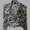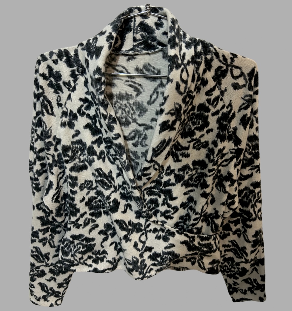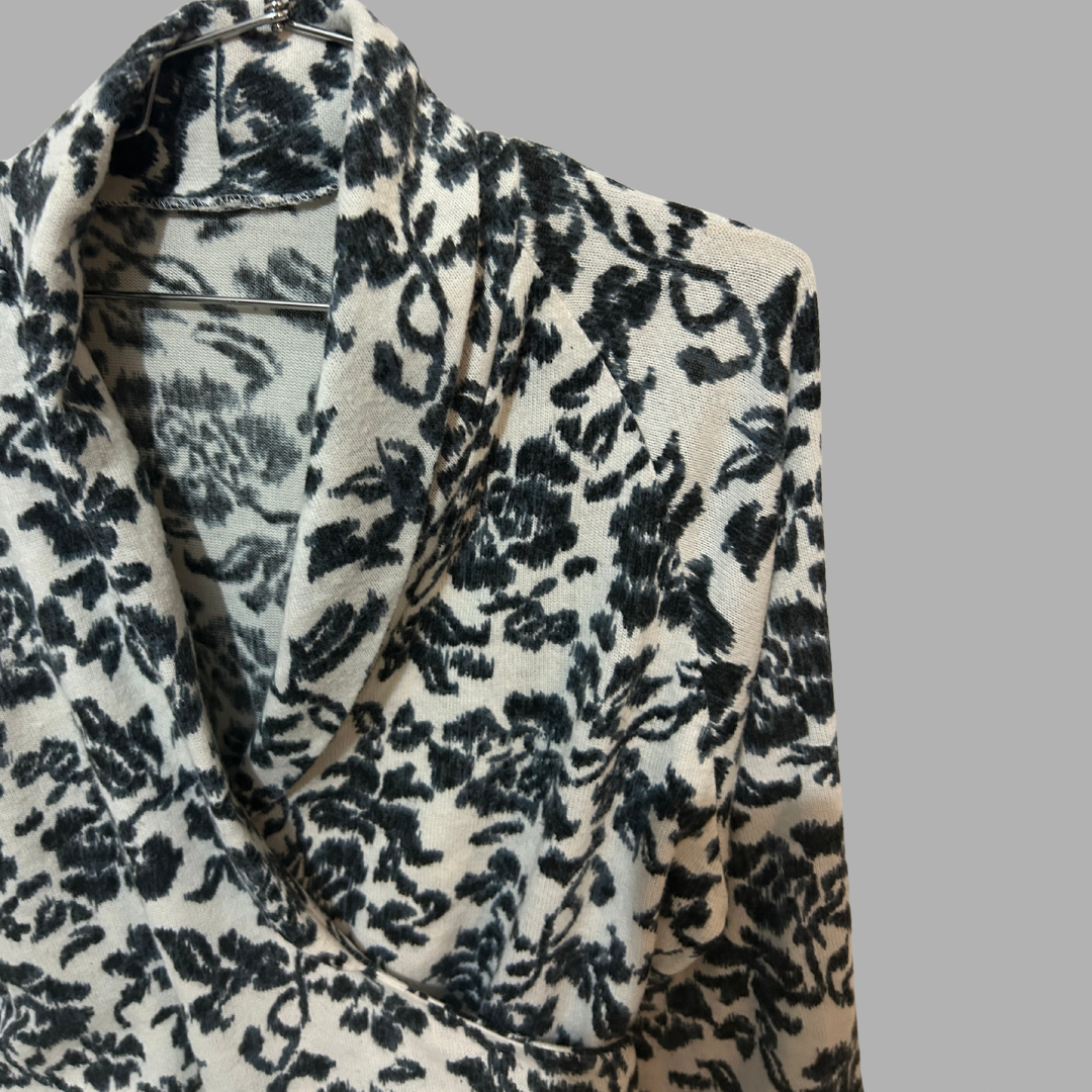 חולצת סריג דקה מעטפת הדפס שחור לבן קשירה מאחורה מצב כמו חדש!