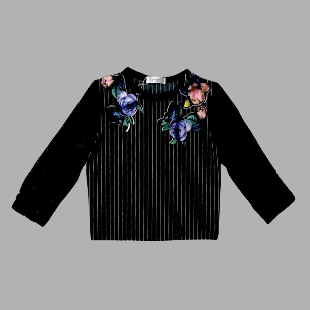 חולצת קרופ “יעלה״ בשילוב פסים עם אפליקציות פרחים ושרוולי קרושה (לייקרה)