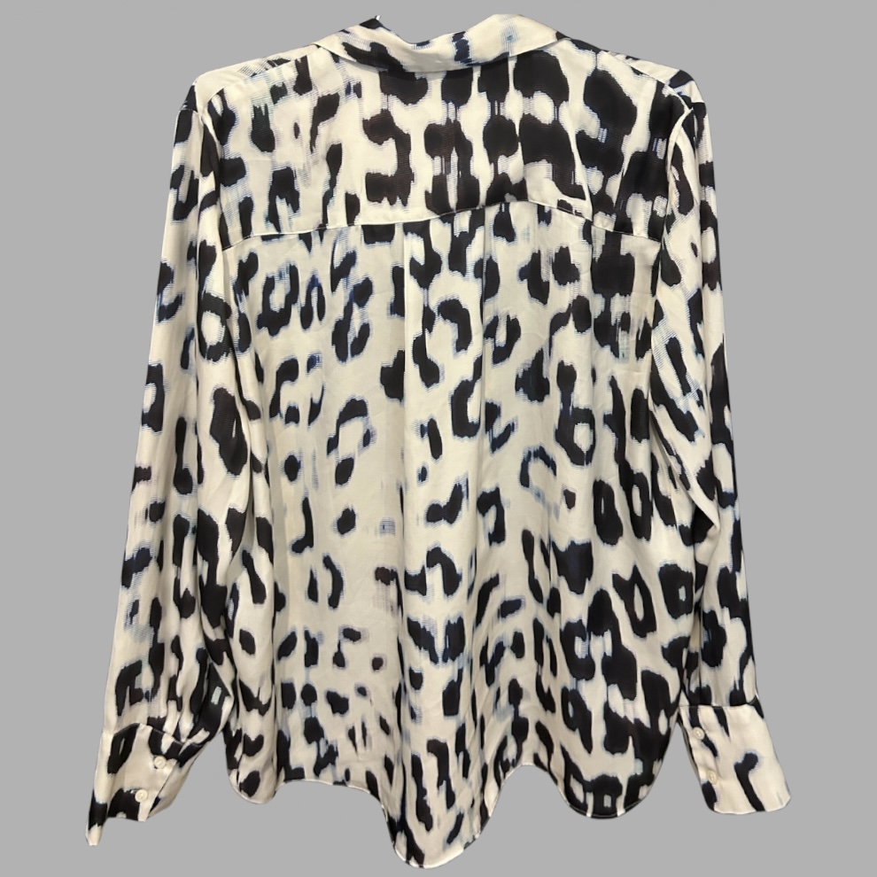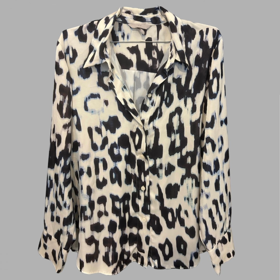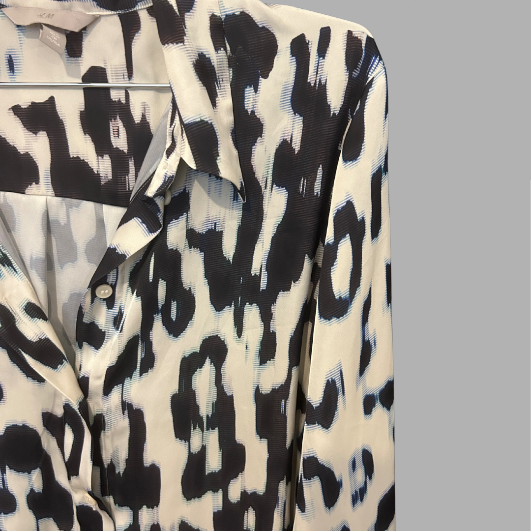 H&m חולצת סאטן אוברסייז מכופתרת נשפכת מידה M לבנה עם פרינט מנומר שחור ותכלת מצב חדש!