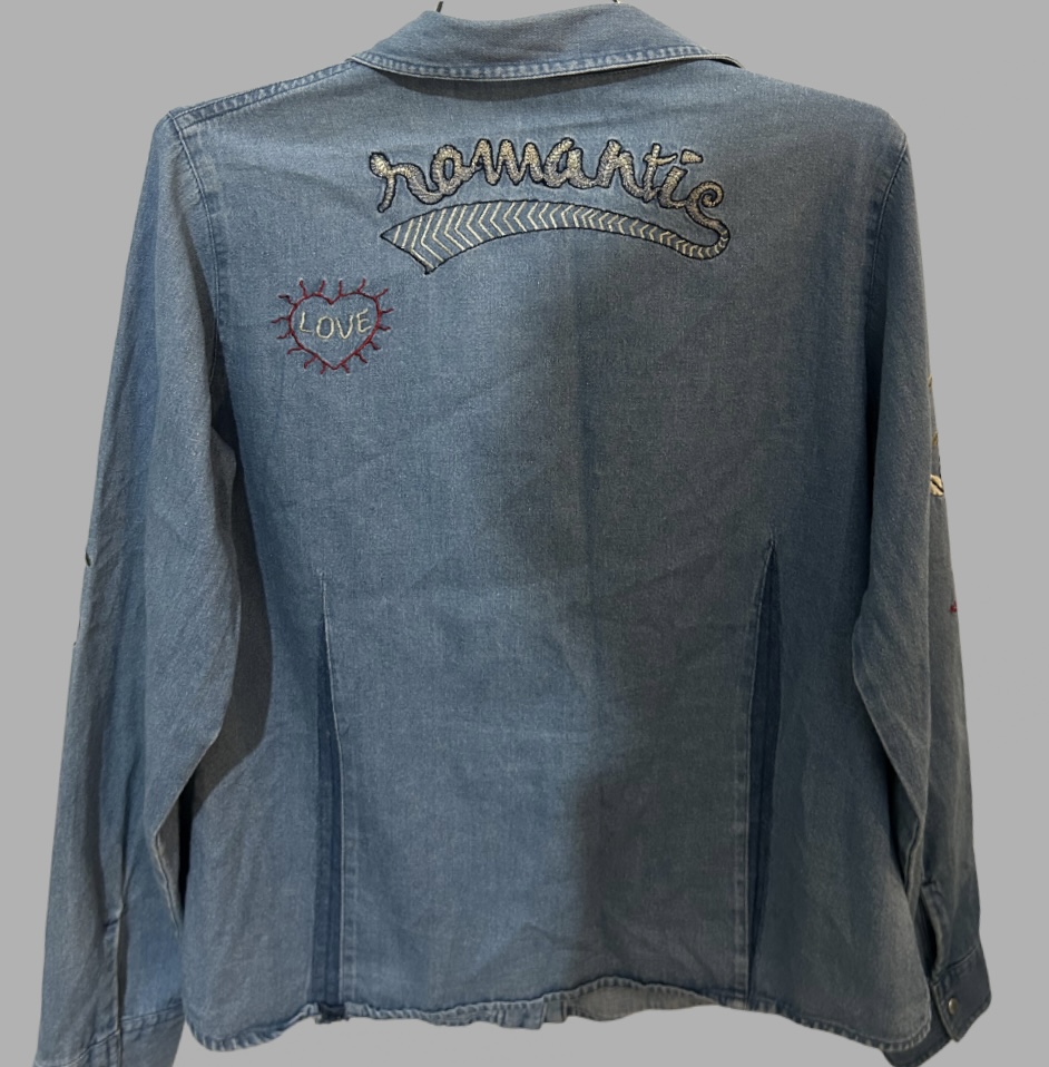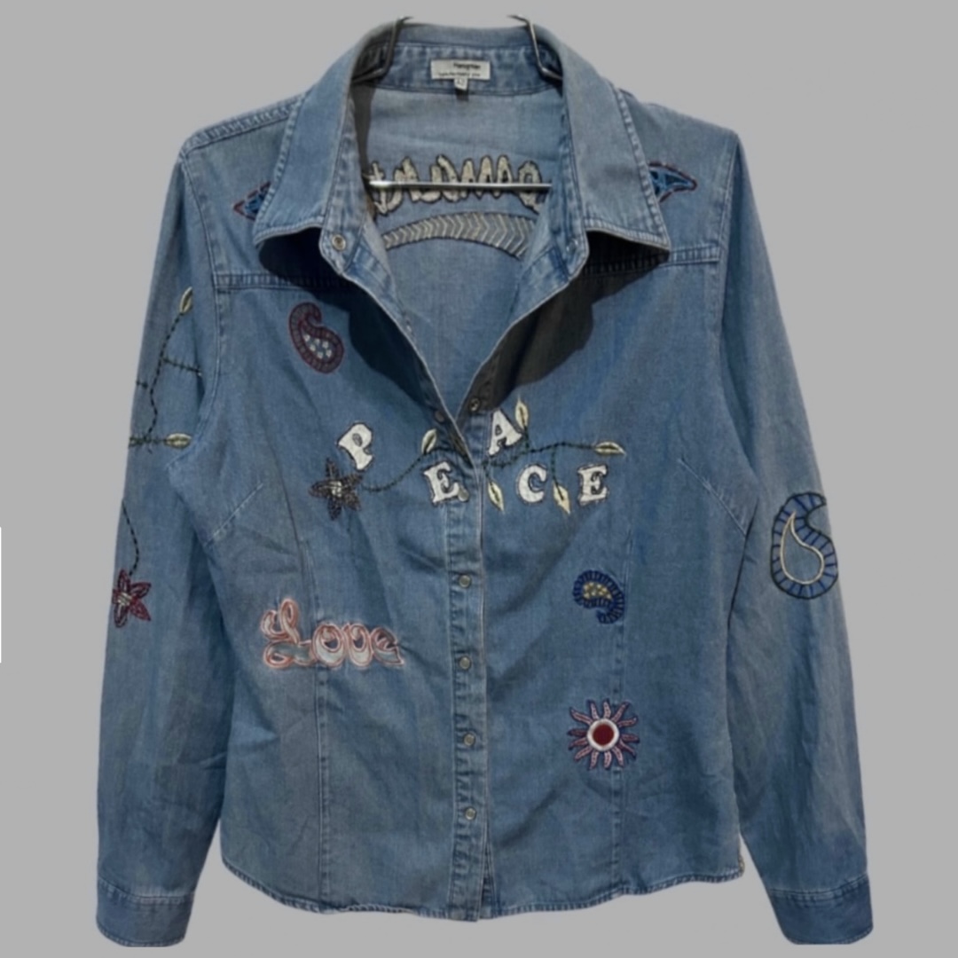 Honigman חולצת ג׳ינס רקומה מידה 42 עם טיקטקים מצב חדש!