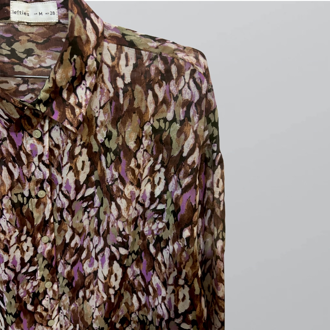 היקף – 120 סמ, אורך – 71 סמ חולצת אוברסייז מודפסת ומיוחדת עם שרוול ארוך וכפתורים לאורך, מידה M של Lefties