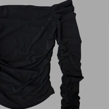 Studio Pasha מידה XS חולצת לייקרה שחורה אוף שולדרס עם כיווצים מחמיאים מצב חדש
