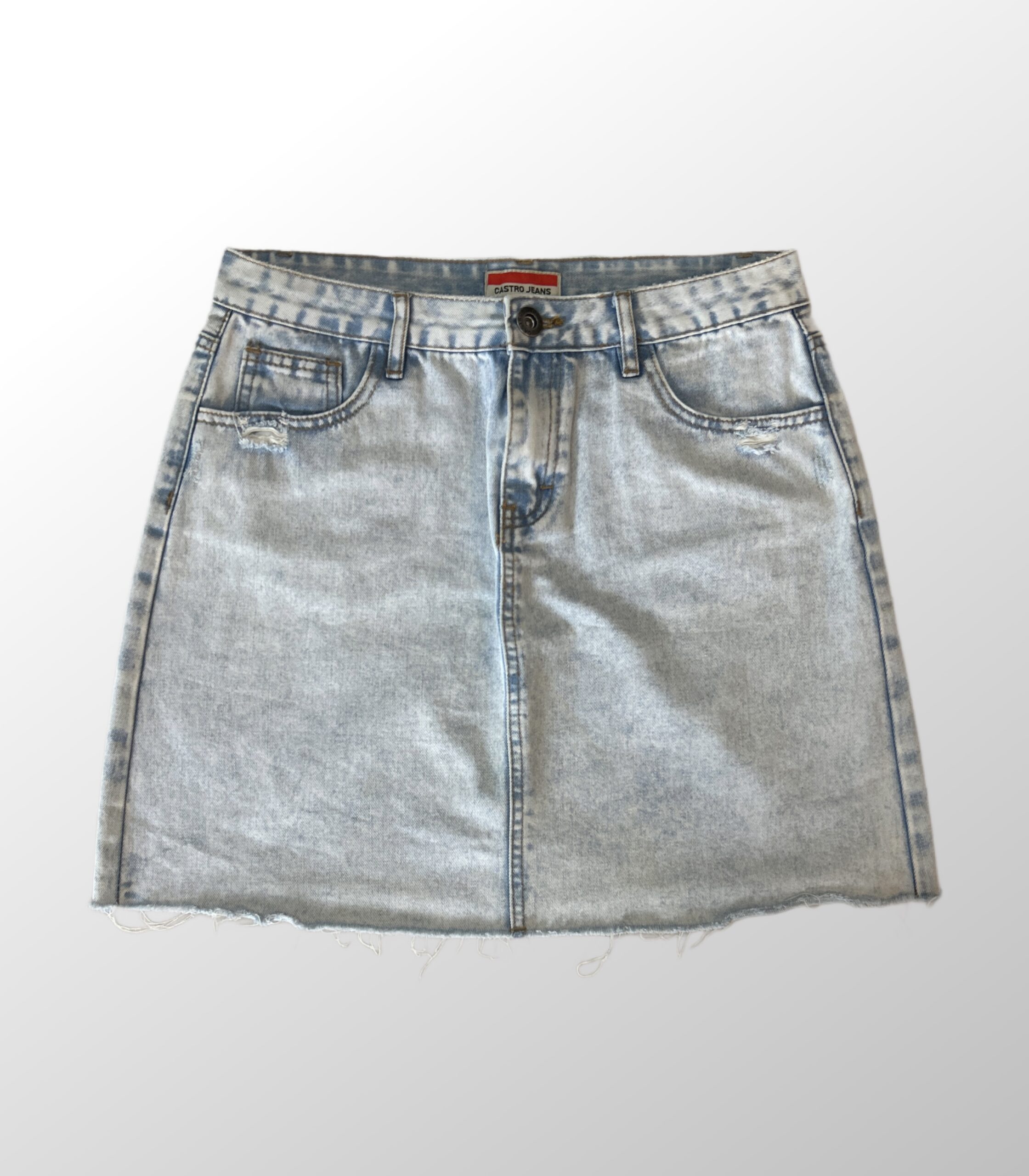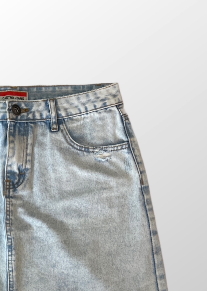 חצאית מיני ג’ינס לנשים של Castro במידה 38, בצבע תכלת עם שטיפות אופנתיות. גזרה מחמיאה, סגירת כפתור ורוכסן, עם כיסים קדמיים ואחוריים לעיצוב קלאסי. שולי חצאית פרומים למראה טרנדי. חצאית ג’ינס קצרה שמתאימה לכל עונה, לשילוב עם טי-שירט, קרופ טופ או בלייזר ללוק ייחודי. מושלמת למראה קז’ואל עם סניקרס או סנדלים. חצאית ג’ינס לנשים במידה 38 – זמינה עכשיו.