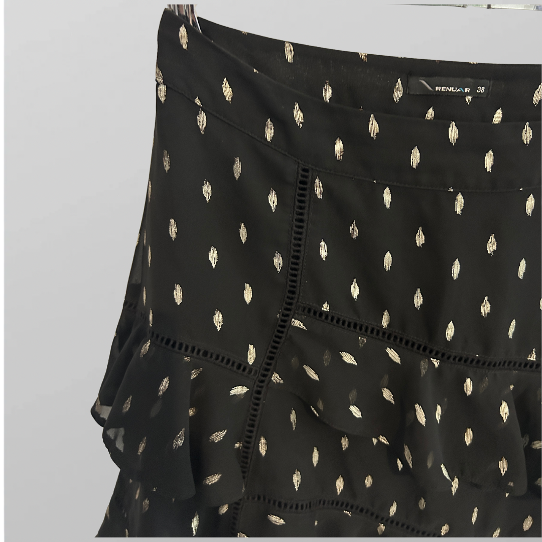חצאית ערב שחורה בשילוב מלמלה והדפס עלי זהב! מידה 38