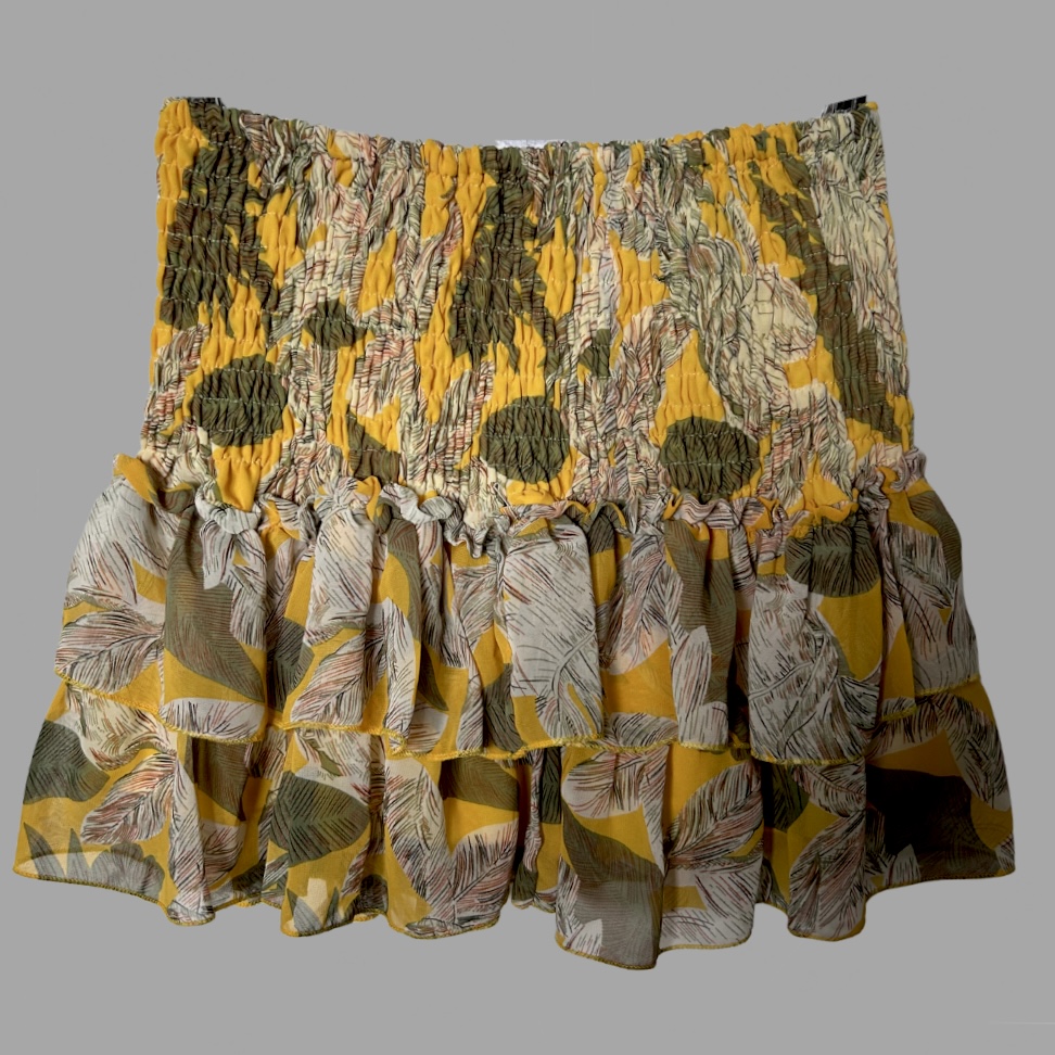 חצאית שיפון מודפסת קומות M וכיווצים גומי במותן