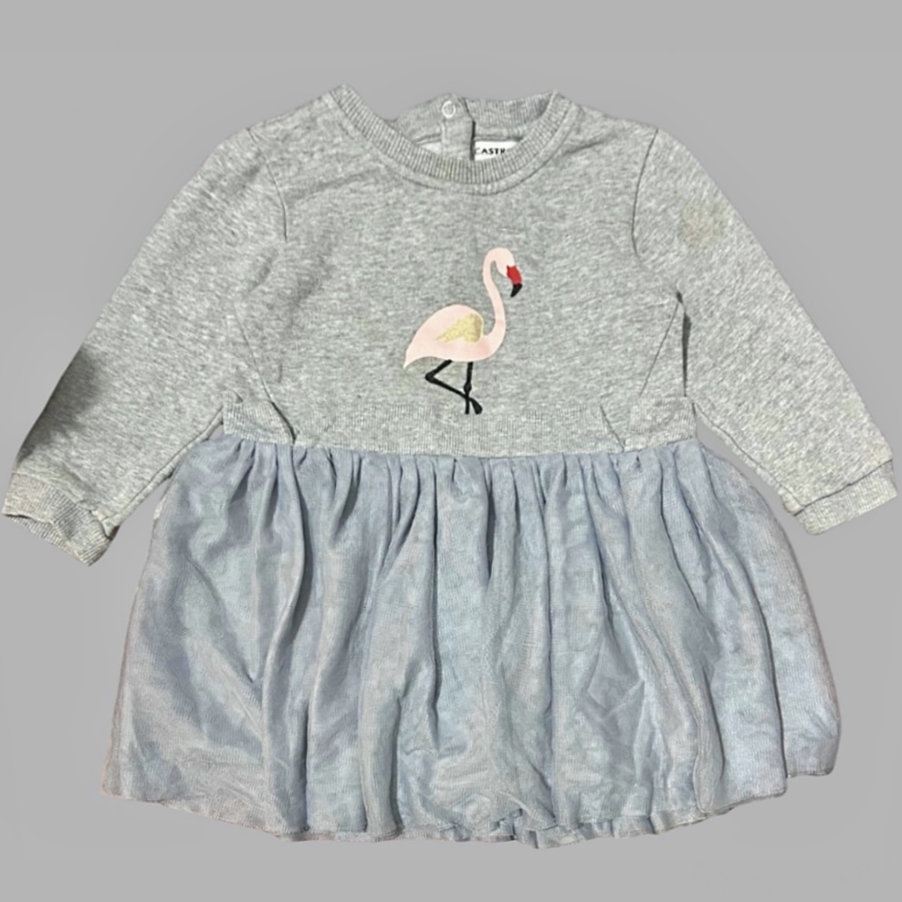 אורך 48 ס״מ קולקציית ילדות🎀 Castro שמלת פוטר טול פלמינגו לגיל שנתיים