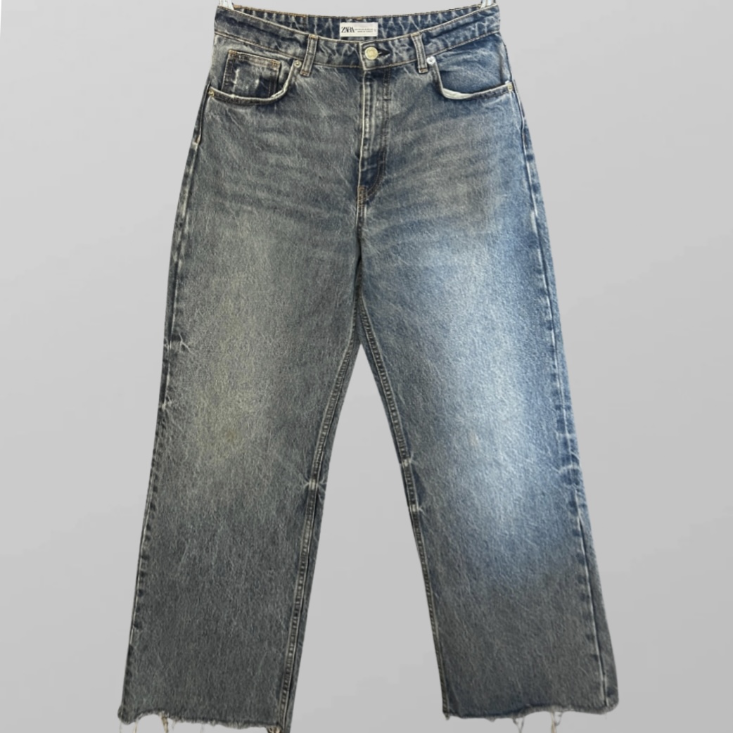 ג׳ינס ארוך כחול גזרה ישרה וגבוהה עם סיומת גזורה מידה 40 של Zara