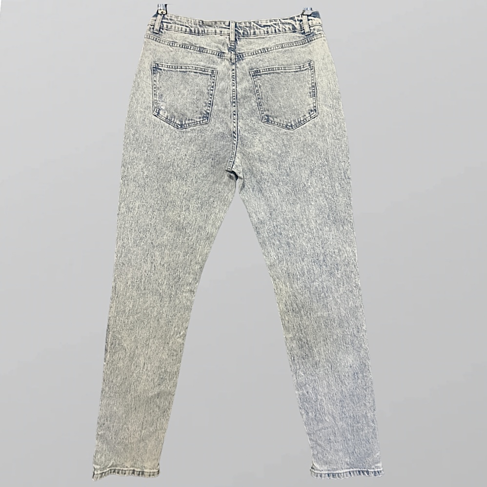 ג׳ינס בגזרה גבוהה MOM בשטיפה בהירה מעט לייקרה עם פתחים קטנים בקרסול הפנימי מידה 44 Castro