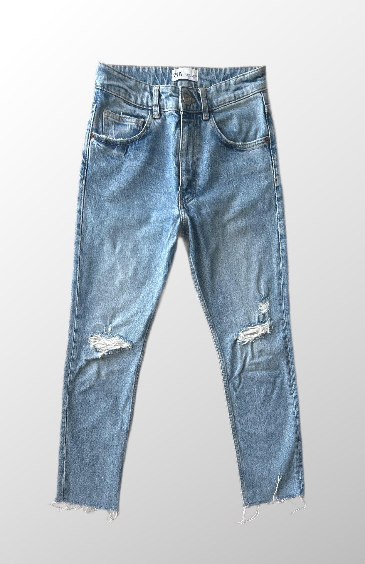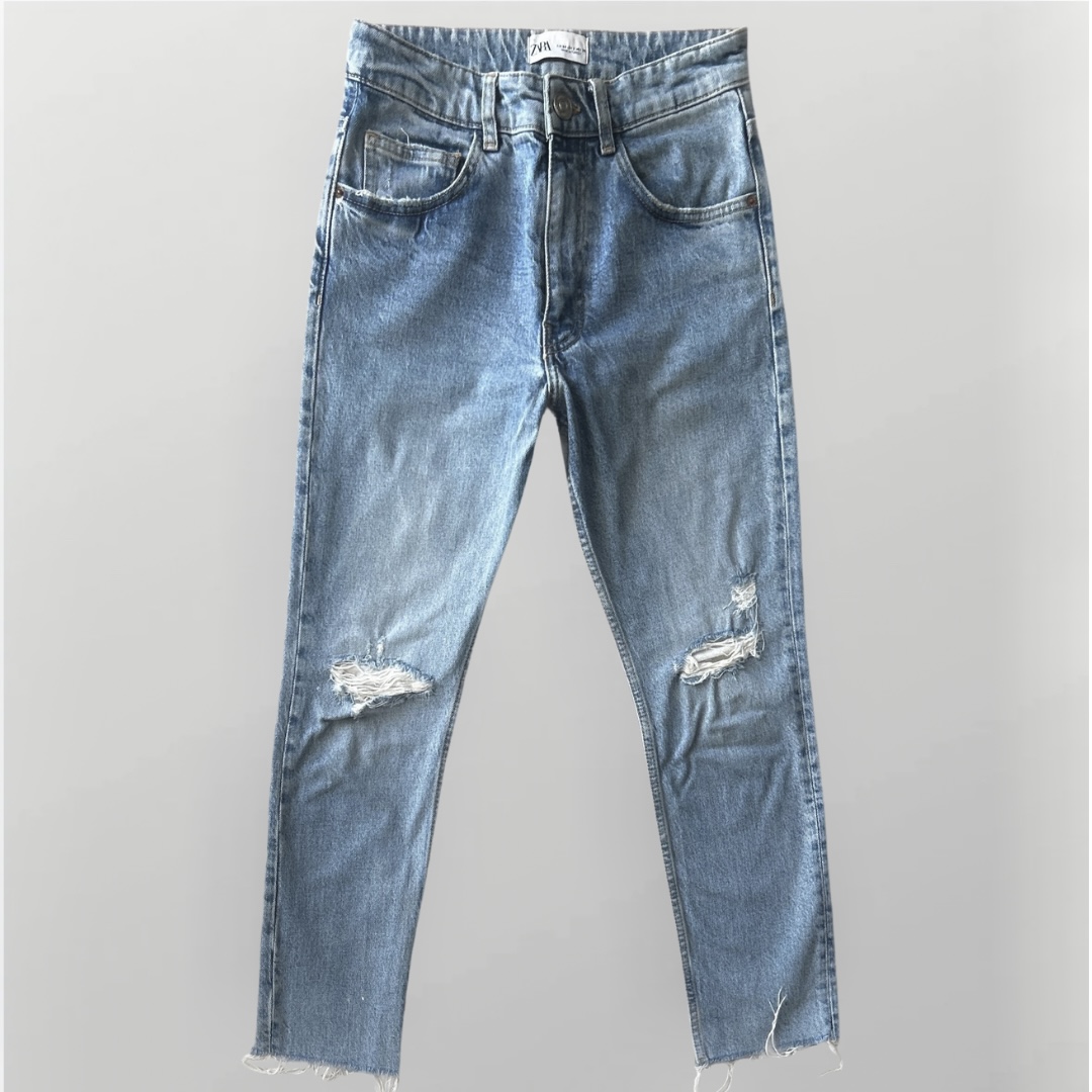 ג’ינס MOM בגזרה גבוהה | קרעים עדינים | אורך קרופ | היקף מותן 75 ס”מ
