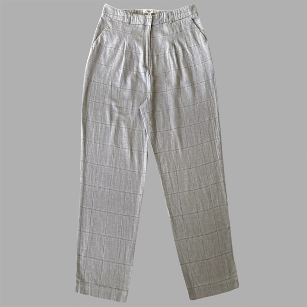 מכנסי פשתן וכותנה איכותיות בגזרה גבוהה! מידה XXL של נקסט מכנסיים משובצים בצבע אבן בז!