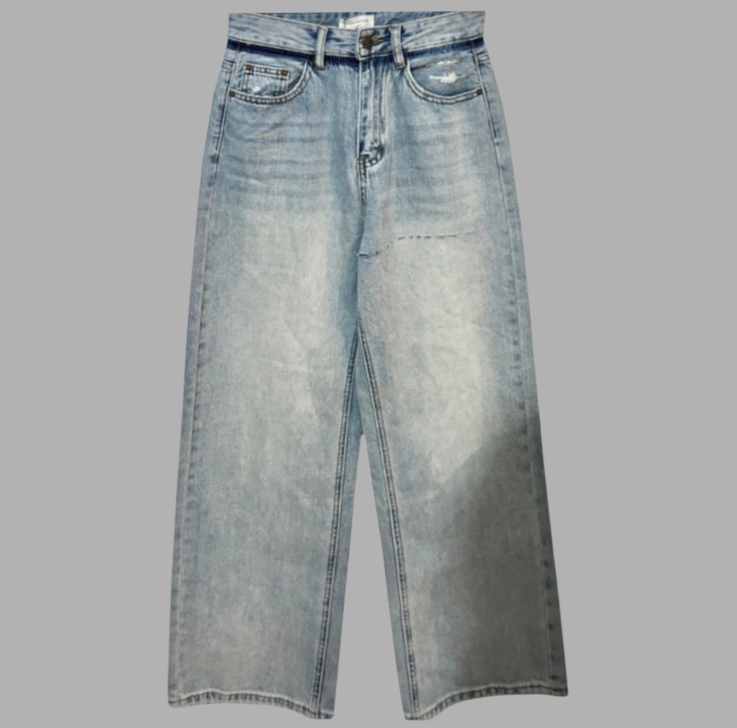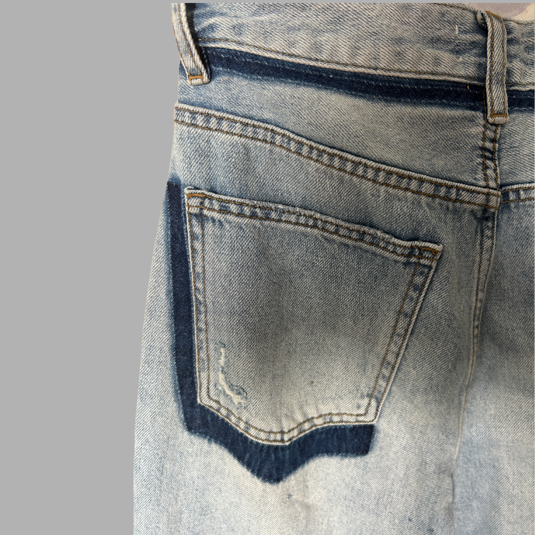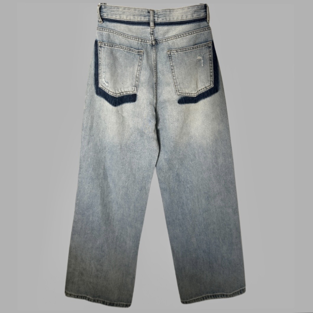 עם טיקט! ג׳ינס גזרה ישרה מידה S גזרה גבוהה עם פס במותן וכיסים כהים יותר מאחורה