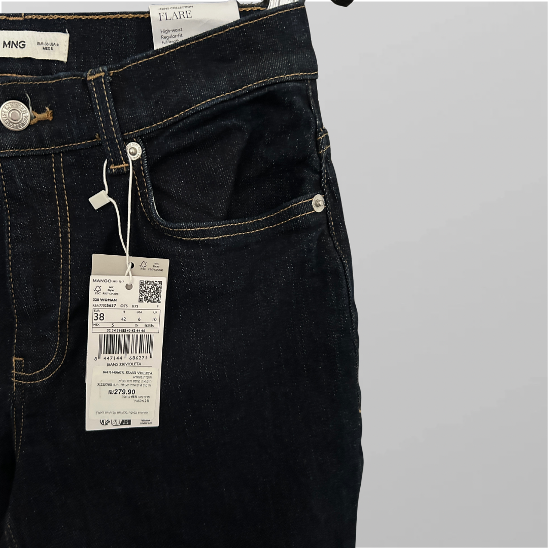 היקף מותן – (לייקרה) 76-84 ס״מ, אורך – 113 ס״מ ג׳ינס חדש מהקולקציה החדשה של מנגו (מחיר בחנות 279₪) ג׳ינס מנגו חדש מידה M בצבע כחול כהה בגזרה גבוהה!
