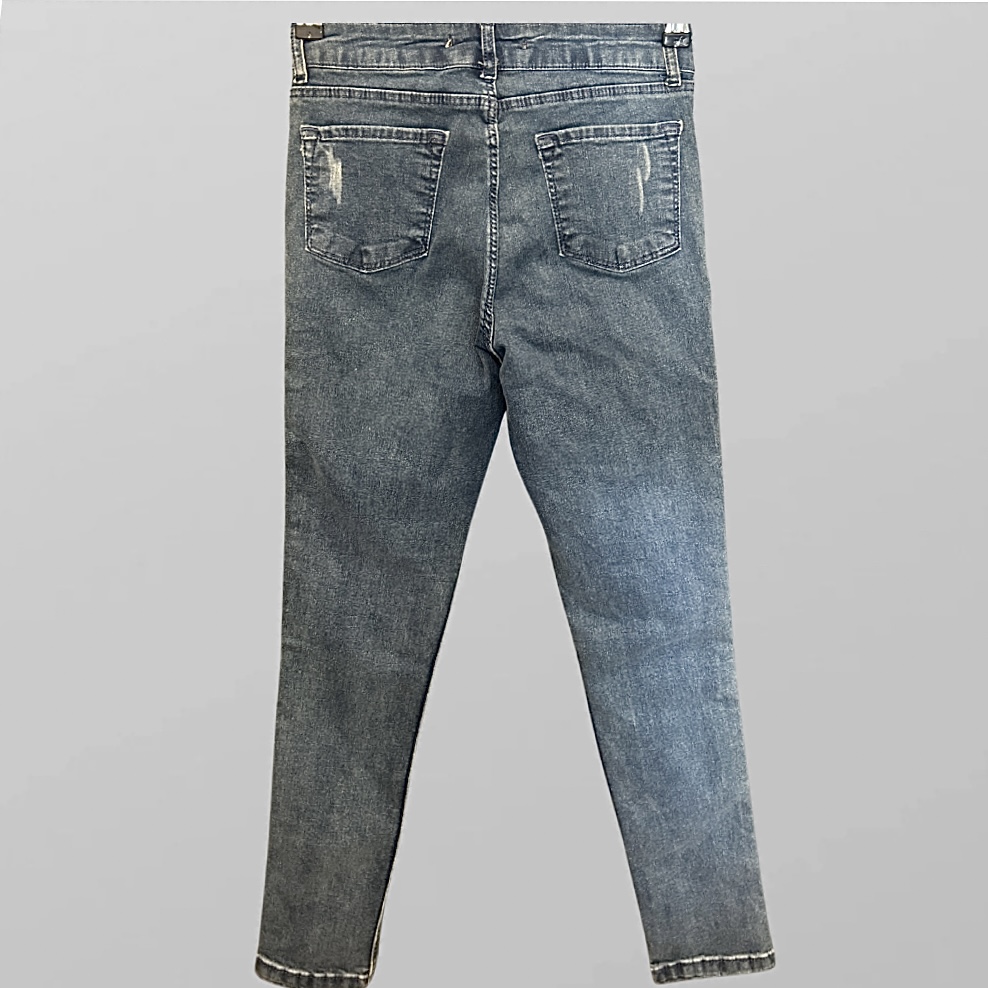 עם טיקט! ג׳ינס סקיני גבוה לייקרה בשילוב רקמה מידה M
