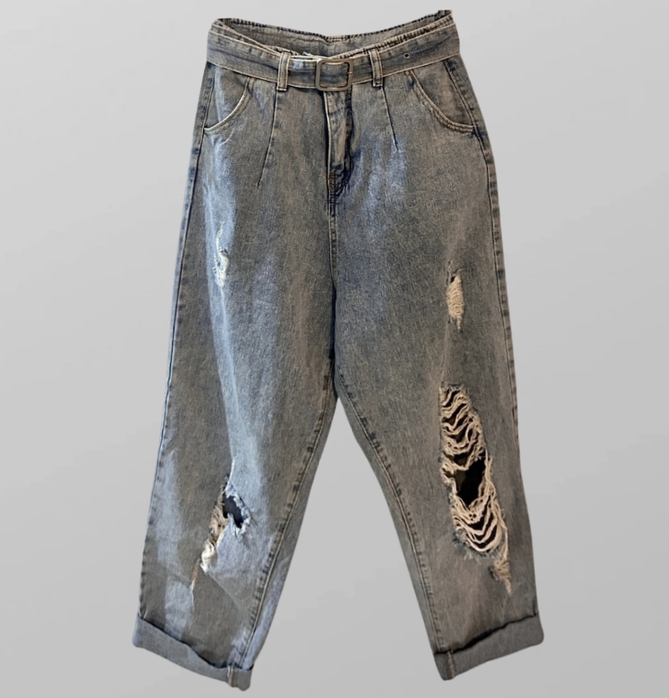 אם את מחפשת את הג’ינס האידיאלי ללוק יומי עם סטייל נונשלנטי, זה בדיוק הפריט בשבילך: ג’ינס MOM בגזרה גבוהה עם חגורת ג’ינס תואמת, קרעים דרמטיים, וסיומת פרומה שאפשר לשחרר בקלות. מדובר בפריט שהוא הרבה מעבר לג’ינס – זה סטייטמנט של שיק אורבני שמתחבר בול לווייב של קולקציית חג קז’ואלית עם טוויסט מיוחד.
