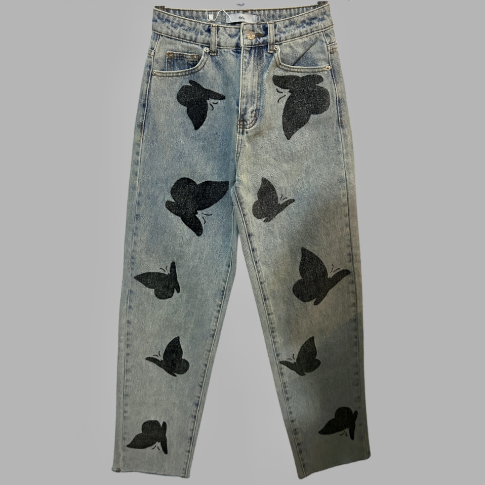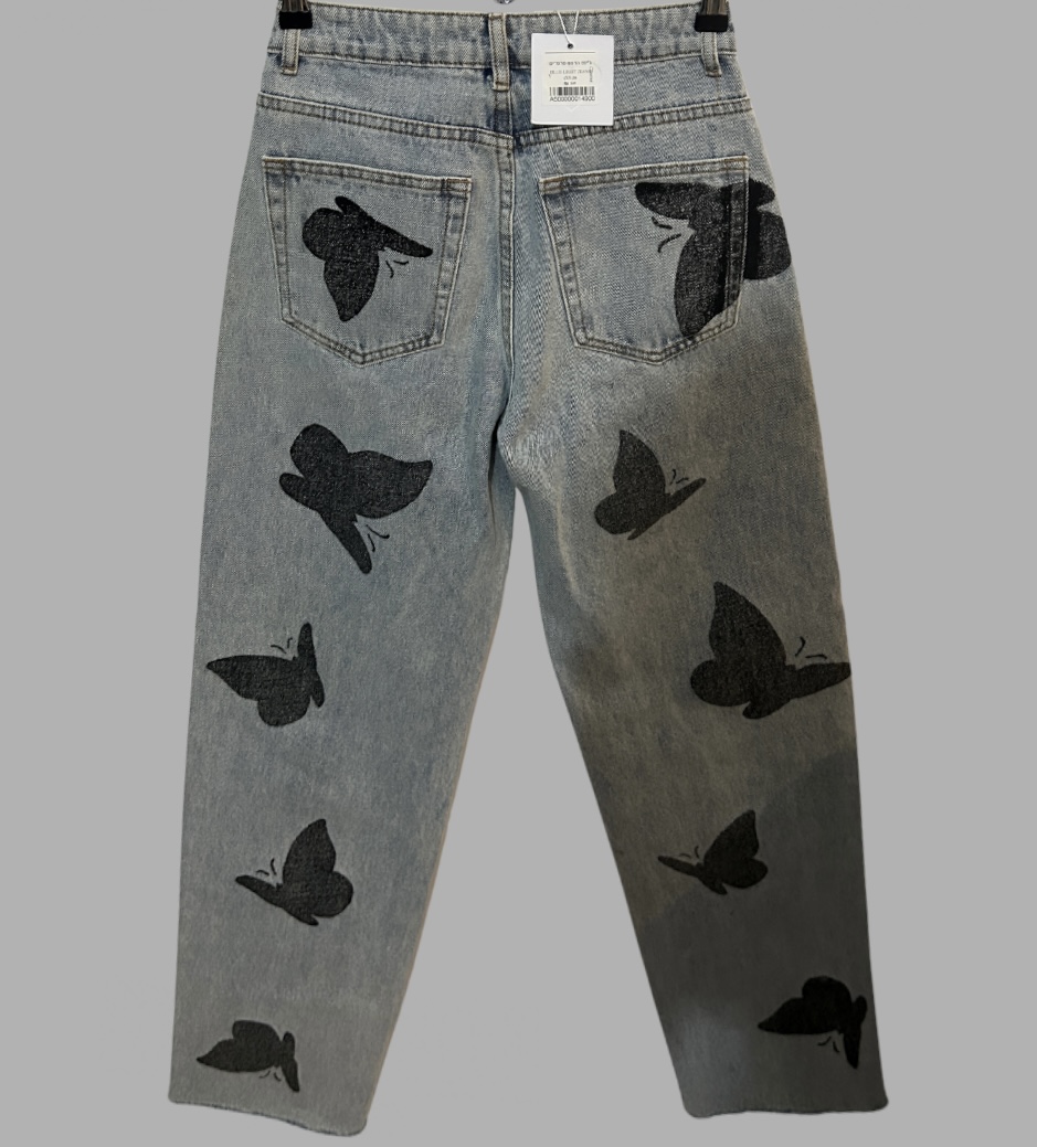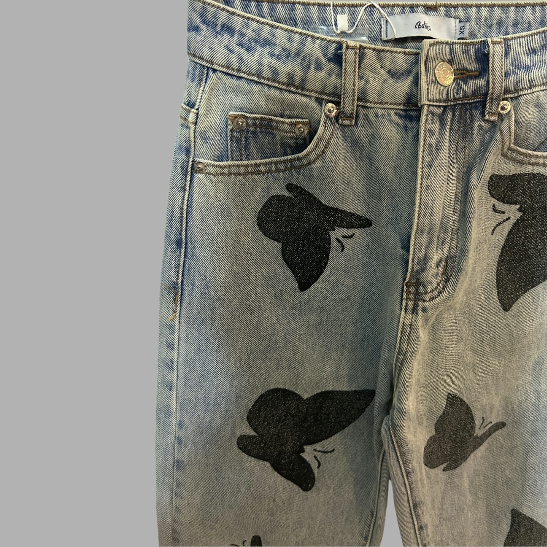 Adika עם טיקט! ג׳ינס מידה Xs פרינט פרפרים גזרה גבוהה גזרת MOM