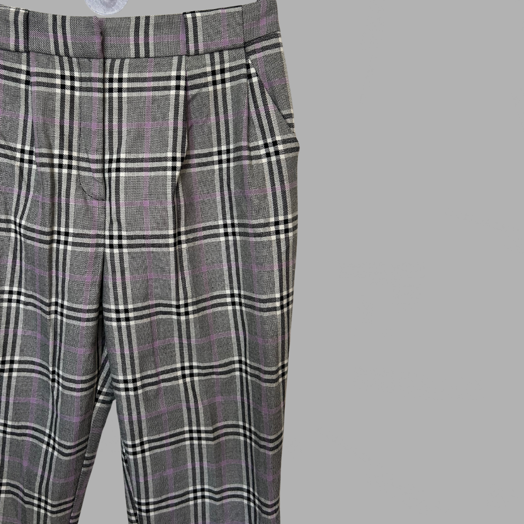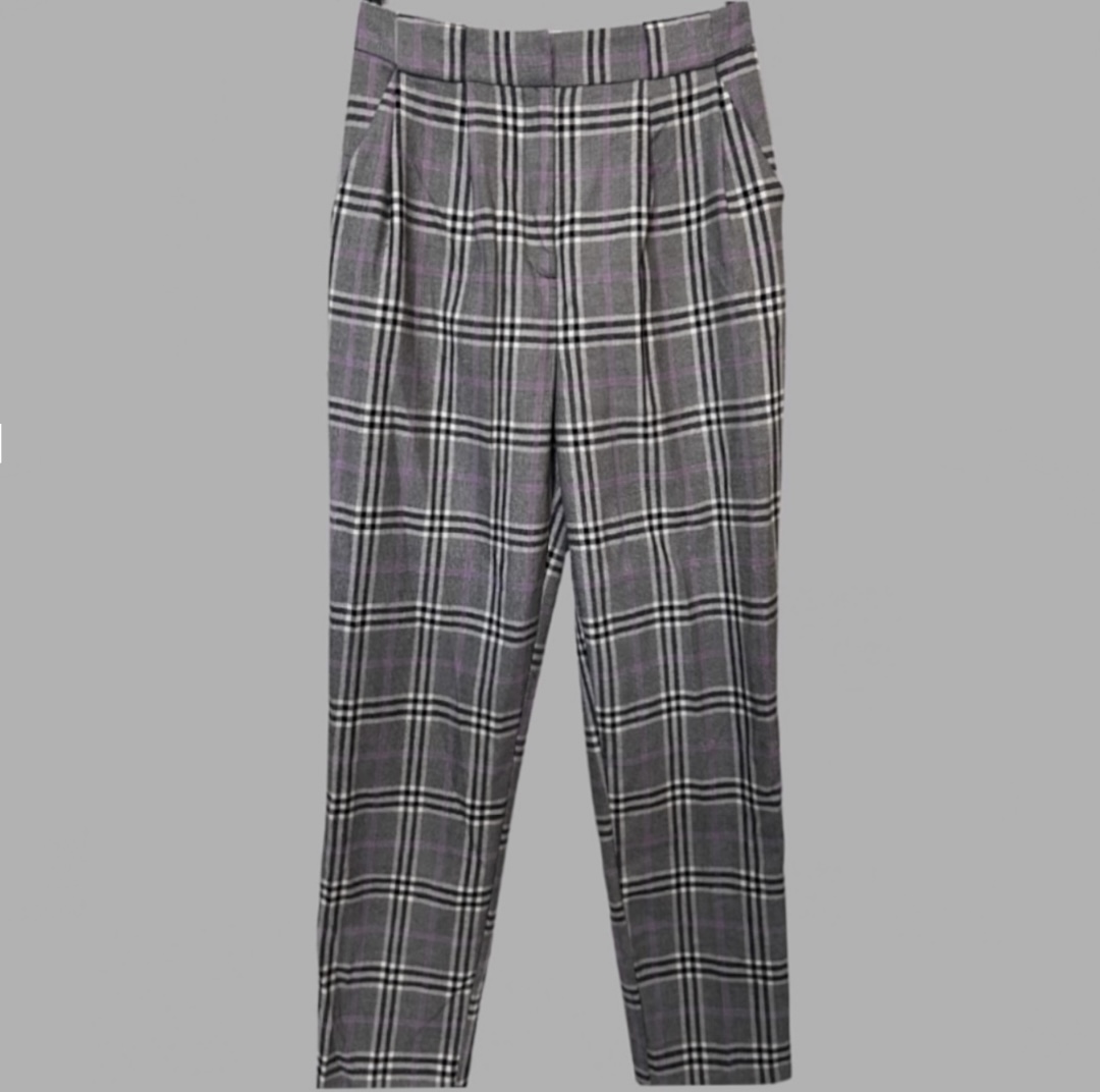 ASOS מכנסיים מחויטים באפור מידה S בפרינט משובץ בשחור עם נגיעות בסגול בגזרה קלאסית וגבוהה מצב חדש!