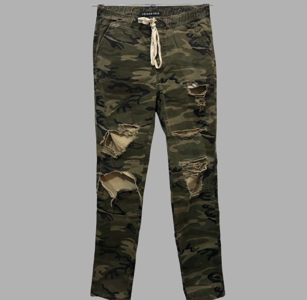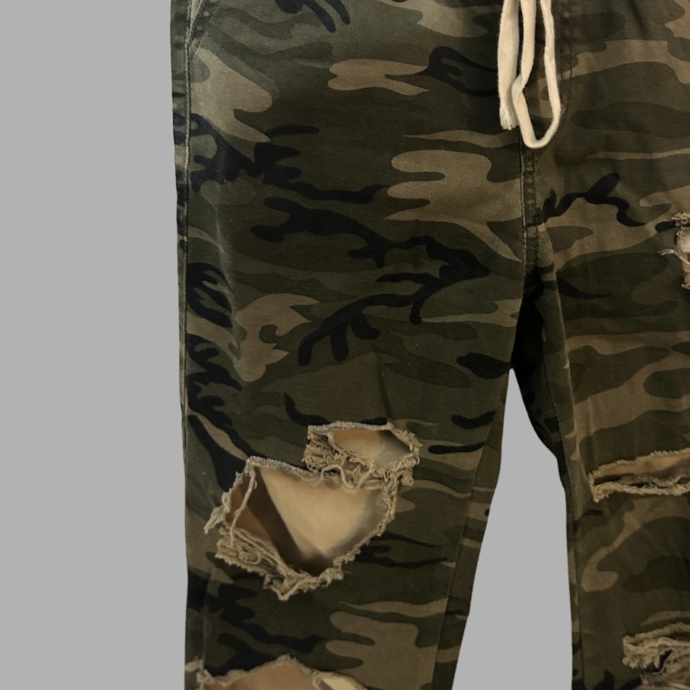 Fashion Nova מידה 38 מכנסיים בהדפס הסוואה עם קרעים לייקרה גזרה גבוהה סקיני וגומי במותן