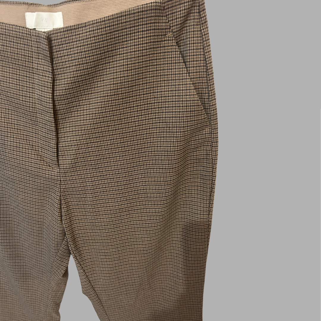 H&M מכנסיים מחויטים לייקרה ׳פפיטה׳ מידה 42 גזרה מתרחבת (פדלפון) גזרה גבוהה גומי פנימי במותן, בצבע חום מצב חדש!