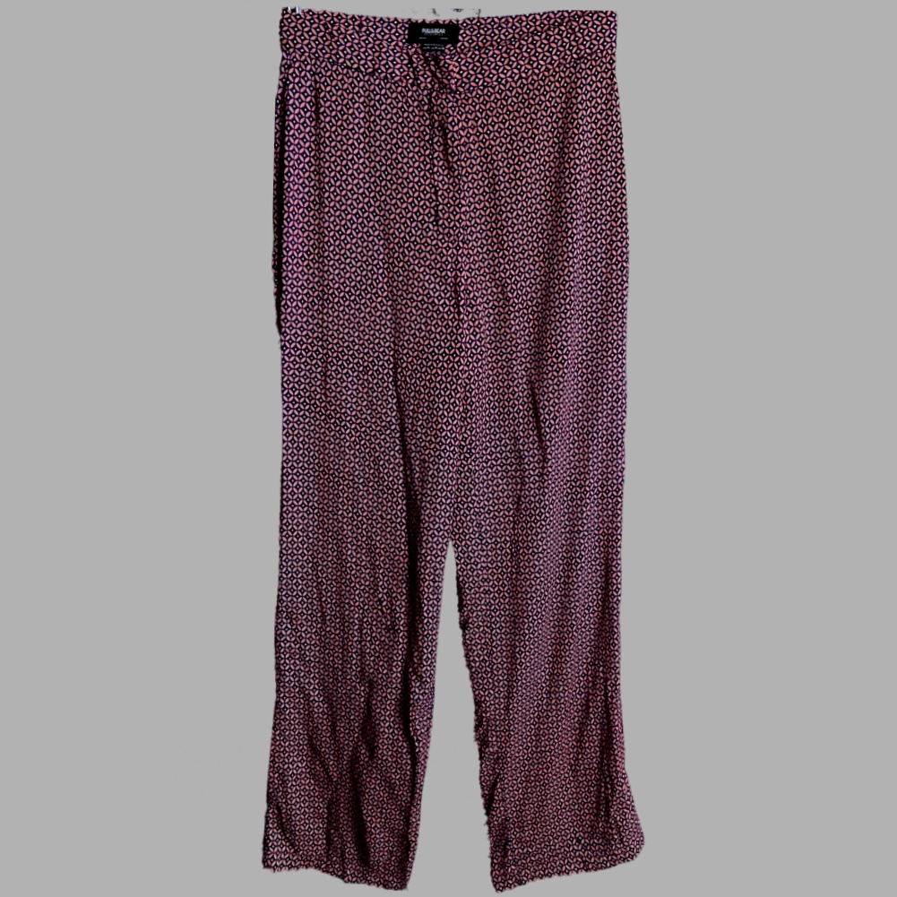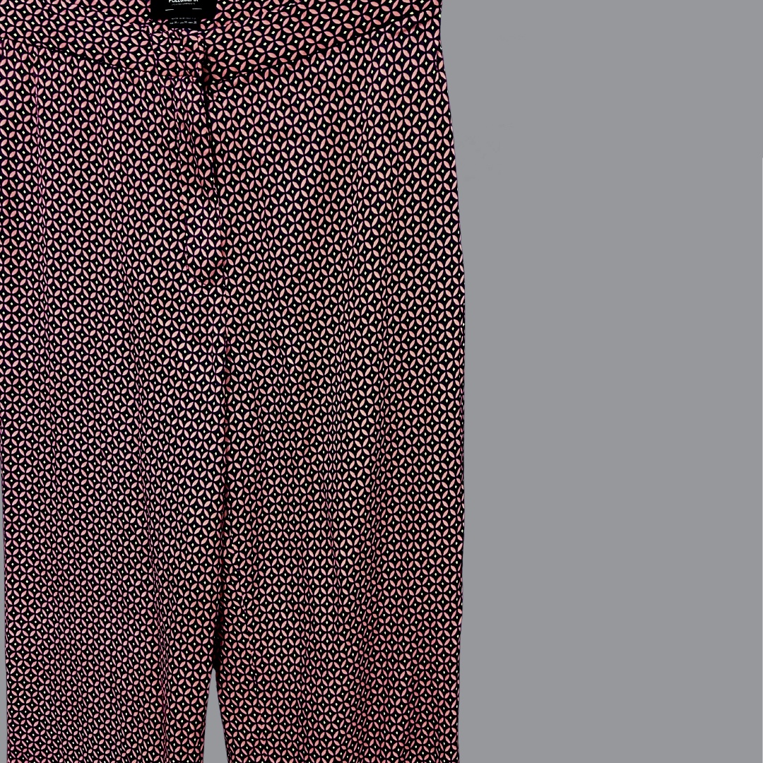 Pull&Bear מידה s מכנסיים דקיקים נשלפים בסגנון רטרו בהדפס גיאומטרי סגול סגירת כפתור וגומי וגומי מאחורה במותן
