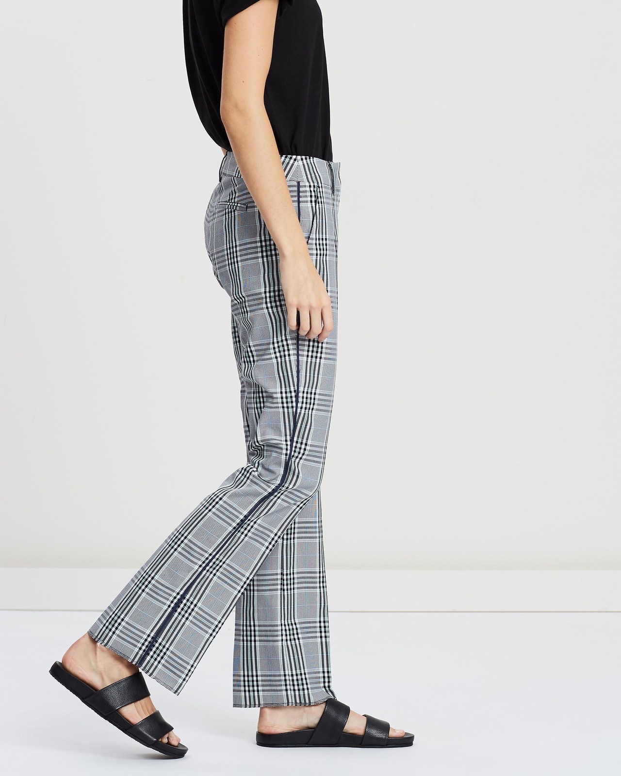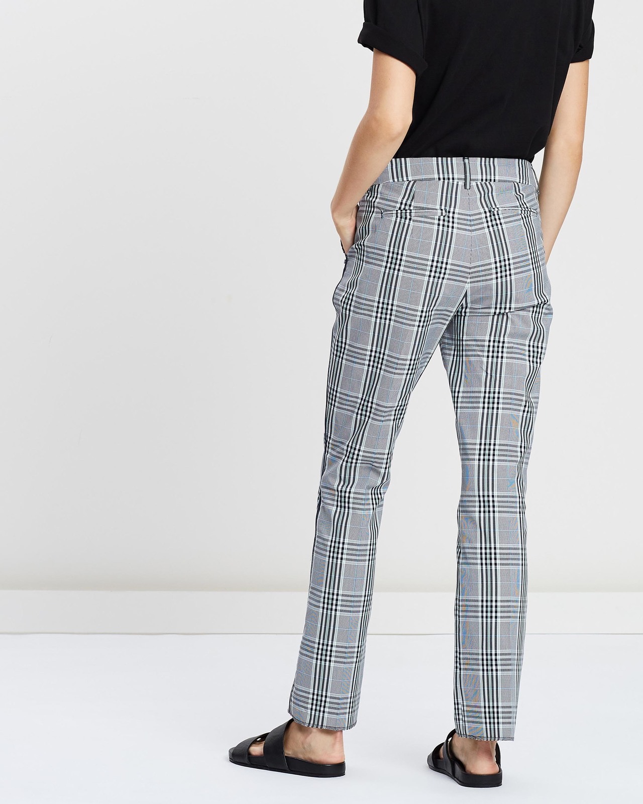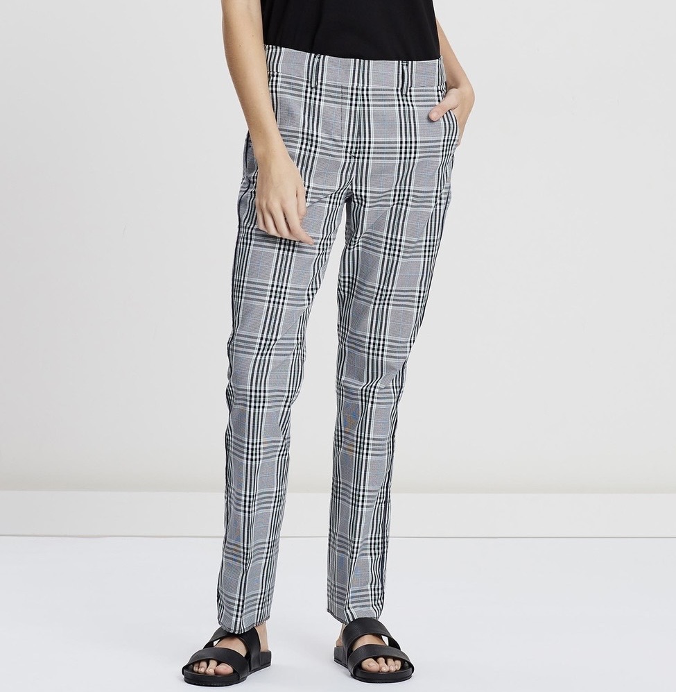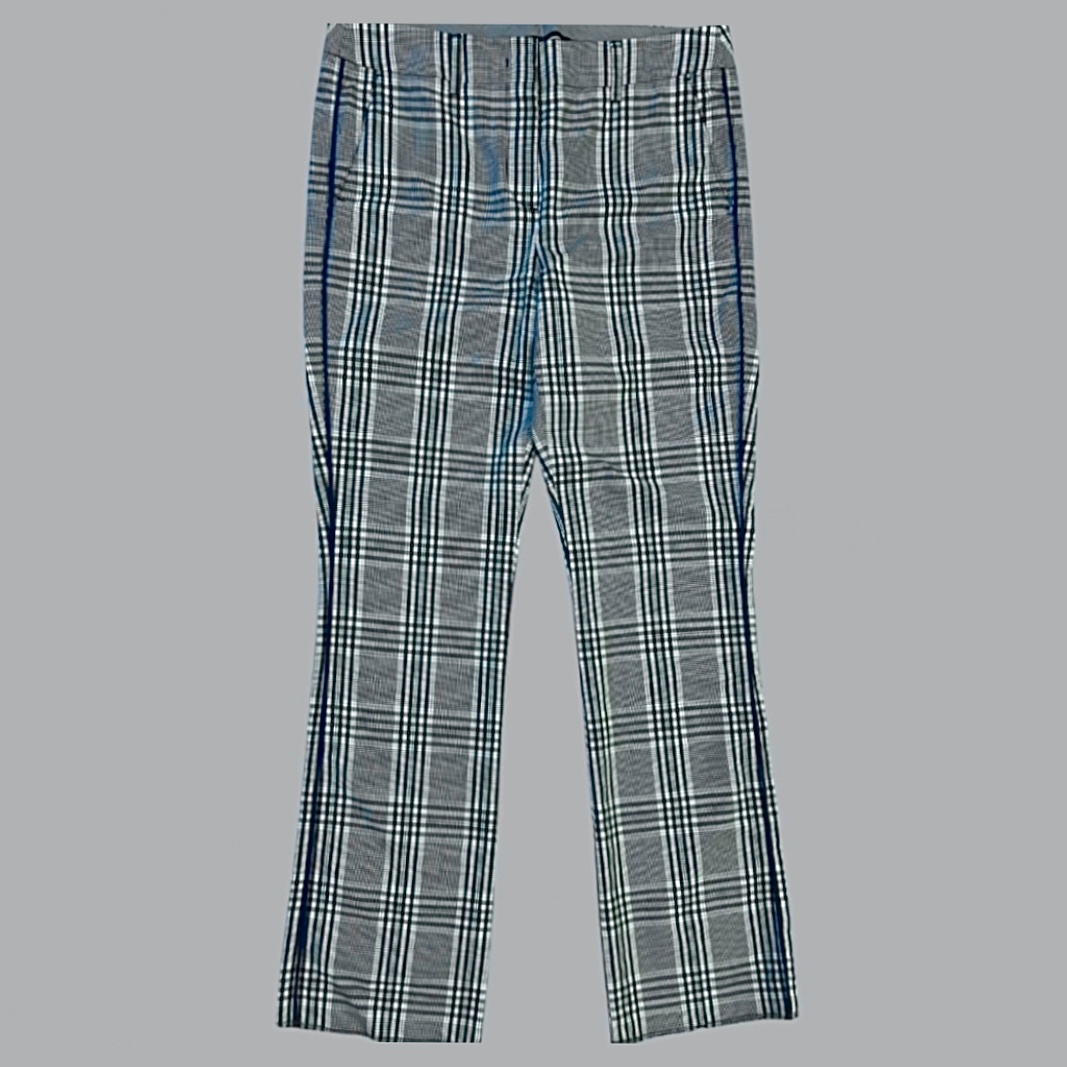 Sportmax Code מכנסיים מחויטים מידה M גזרת אמצע בצבע אפור יו לייקרה בגזרה קלאסית, בהדפס גיאומטרי משובץ עם פס שחור בצדדים, מצב חדש!