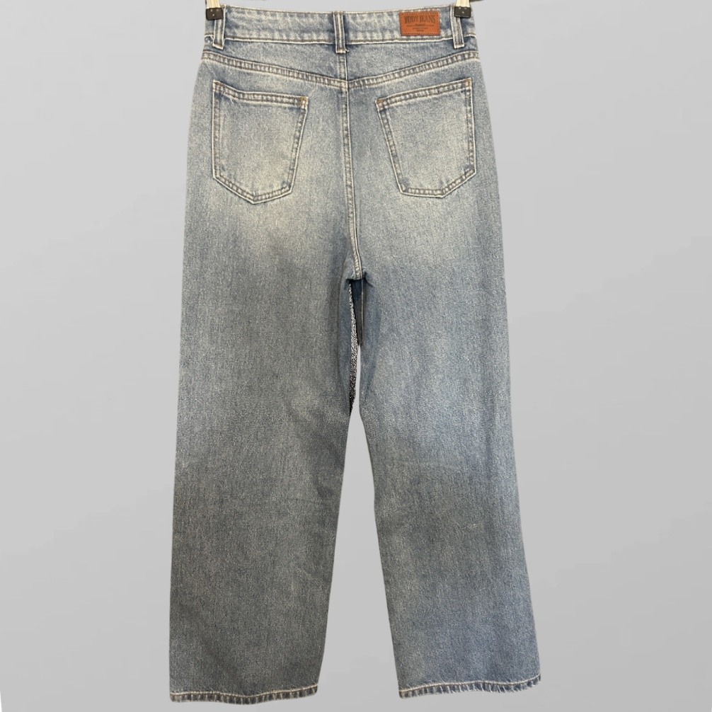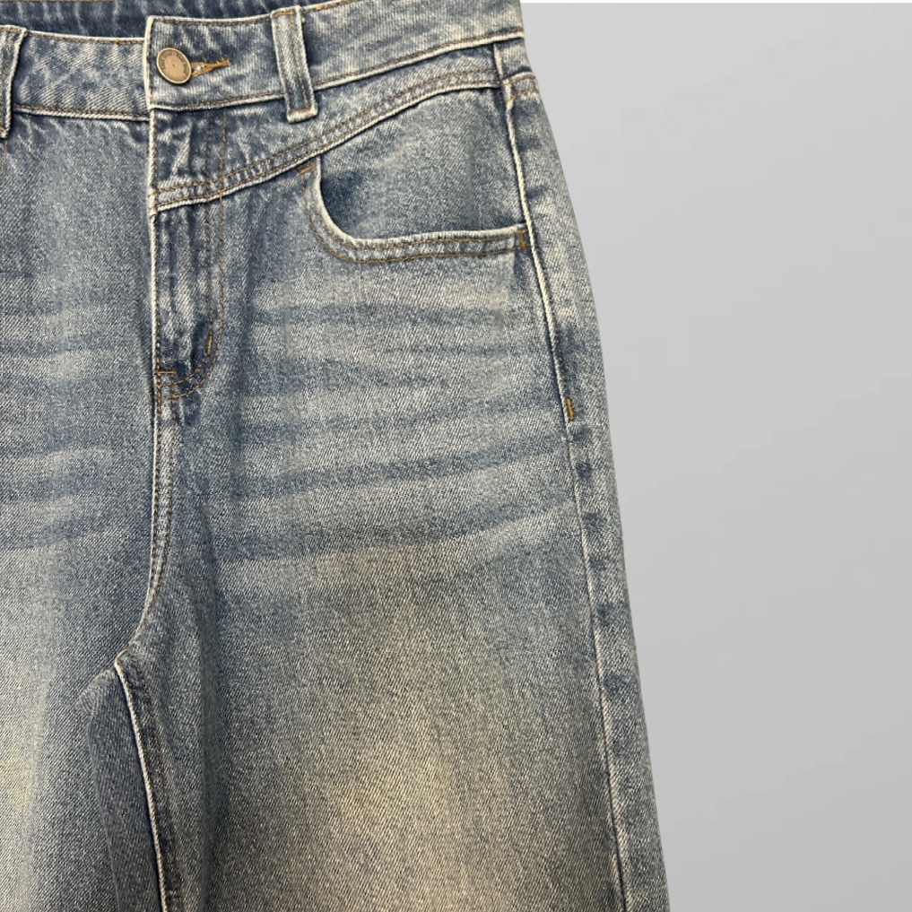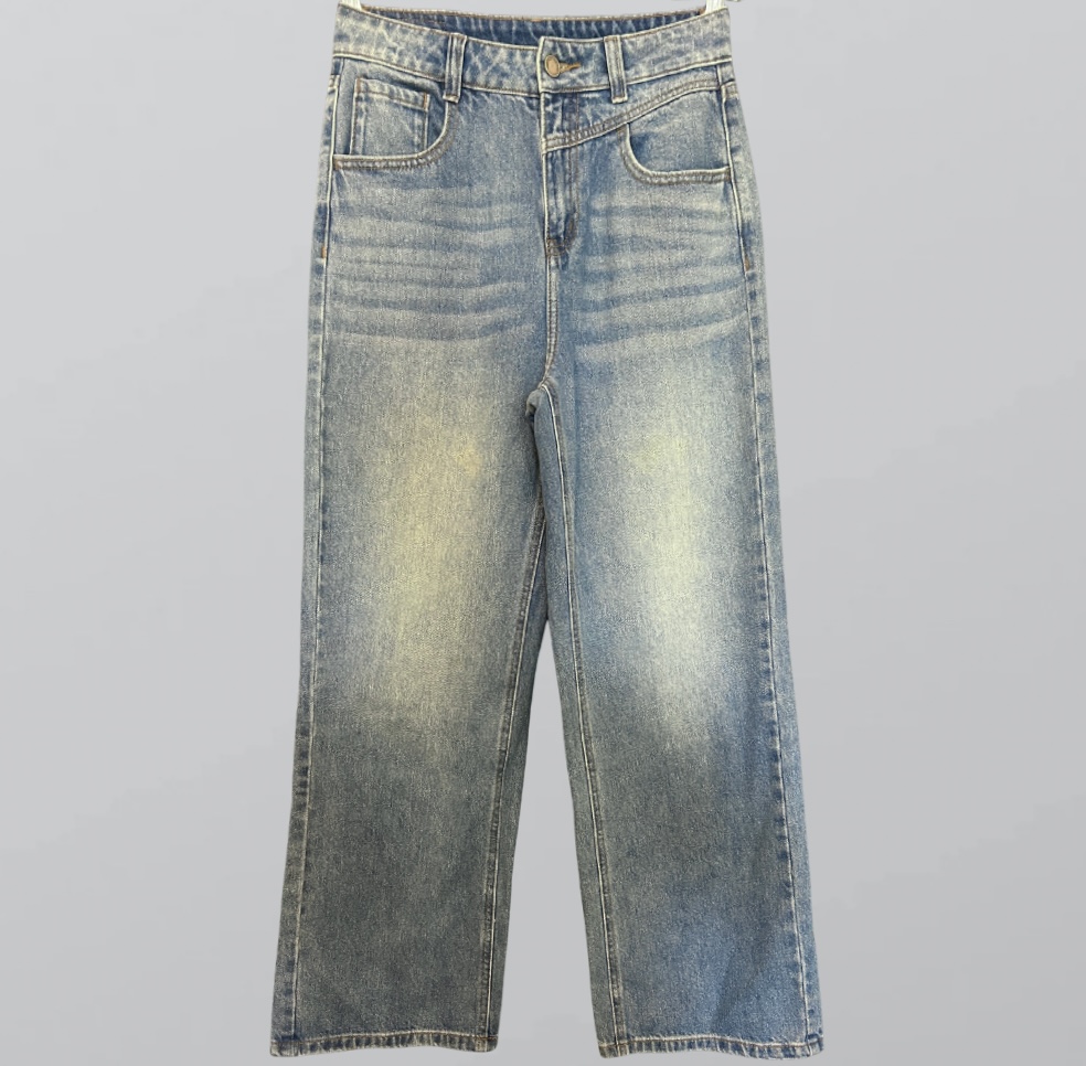 הגוון הכחול־שטוף מושלם – לא כהה מדי, לא בהיר מדי, עם שפשופים מדורגים שמקנים לו אופי ואווירה יומיומית שיקית. אפשר לשלב אותו עם חולצת פופלין מכופתרת, קרופ־טופ מודרני, או אפילו עם חולצת טי פשוטה, ועדיין להיראות כמו לוק שנלקח מפיד אופנה בינלאומי.