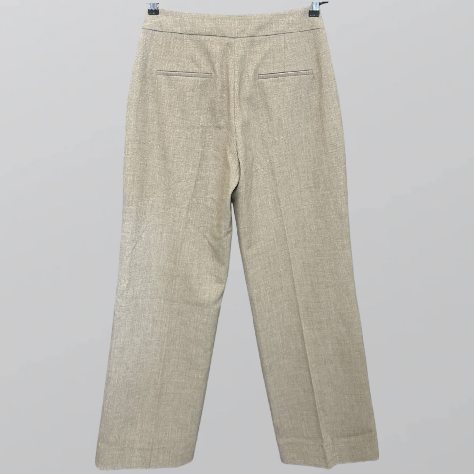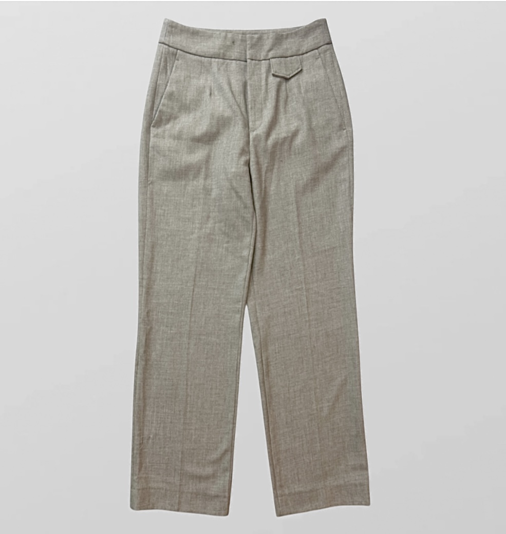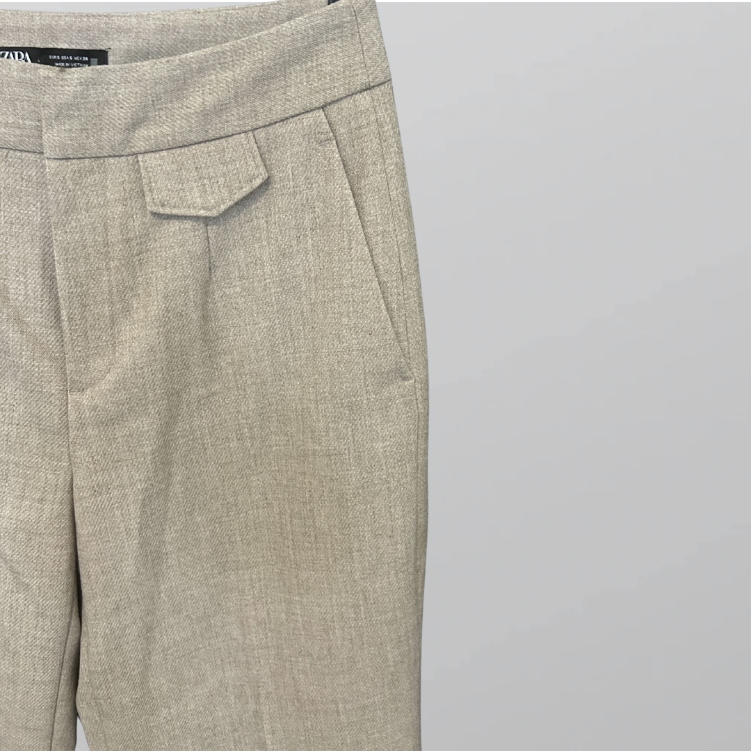 היקף מותן – 77 ס״מ, אורך – 104 סמ , הרכב בד – 88% פוליאסטר, 10% ויסקוזה, 2% אלסטן מכנסיים אלגנטיים ארוכים בגזרה ישרה בצבע אפור אבן גזרה גבוהה מידה 26 של זארה דמוי צמר