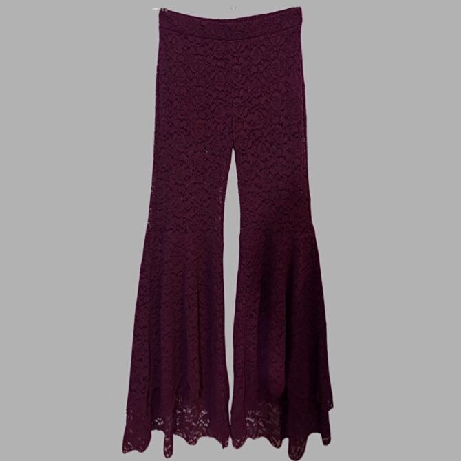 Bershka מידה L מכנסי תחרה מתרחבים פדלפון בצבע סגול גזרה גבוהה מכנסון מובנה ושקוף עד הברך מצב חדש