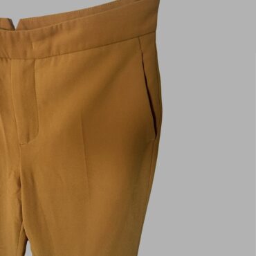 ZARA מכנסיים מחויטים מידה L בצבע חום מתרחבים גזרה גבוהה, מכנסיים בצבע חרדל בגזרה מתרחבת, מכנסיים חומים אלגנטיים